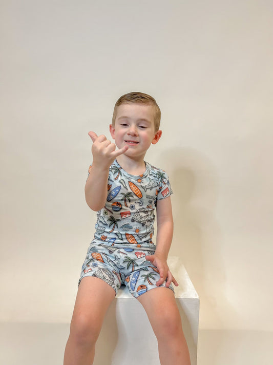 Kids (2-8) 2-Piece Stripe Palm Buttondown Set | Blue
