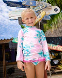 Toddler Girls Two Piece Leopard Ruffle Rashguard Swimsuit