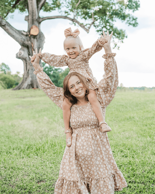 Caroline Long Sleeve Square Neck Dress - Light Khaki Floral