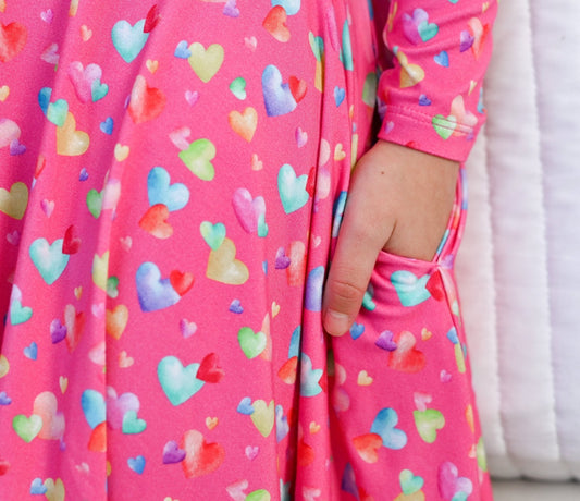 Stretchy Long Sleeve Twirl Dress - Heart Party