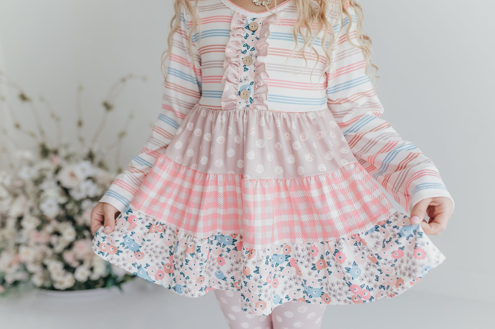 Level up your little one's style with this playful 3 tiered sand floral pant set. Perfect for any occasion, this set features a unique tiered design and a charming floral print. Comfortable and stylish, your little girl will love twirling in this set!