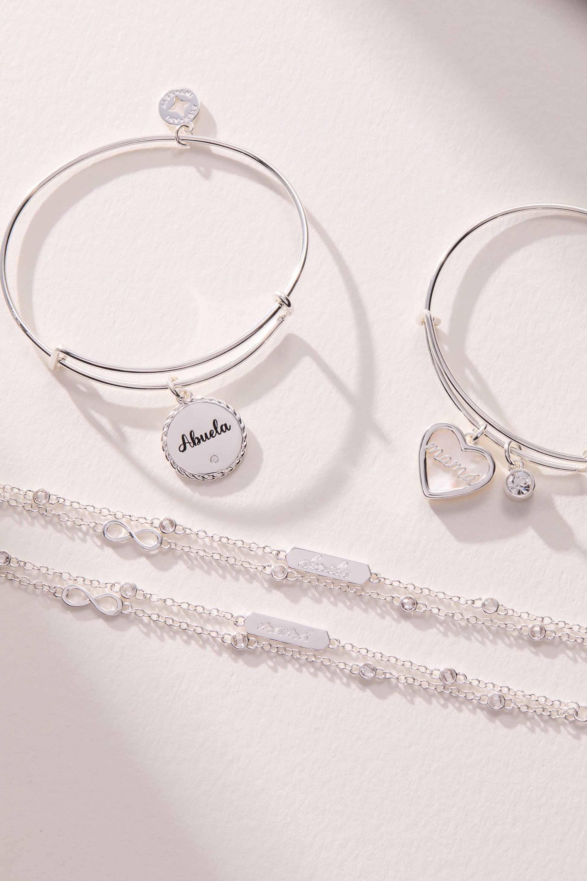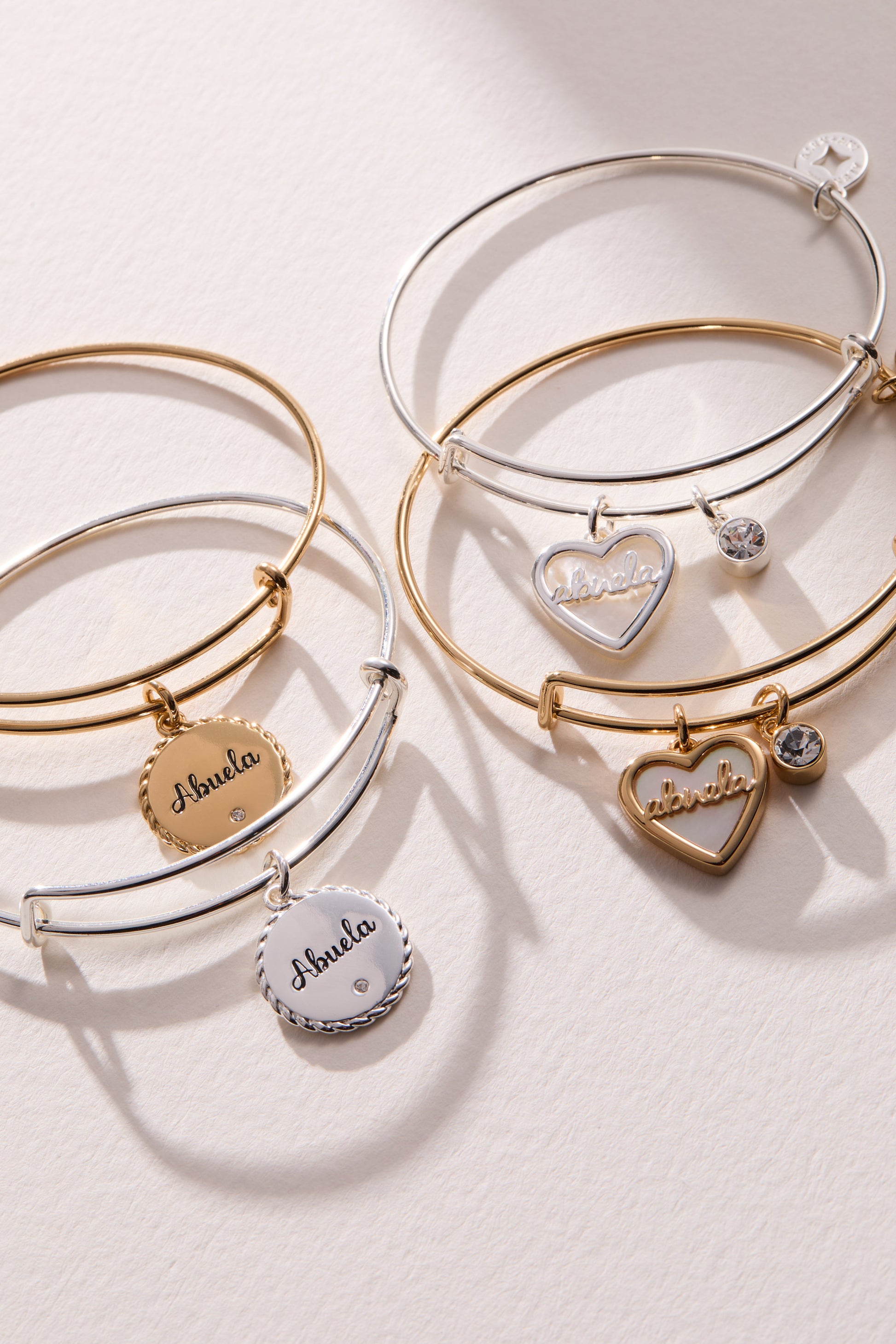 The beloved Because I Love You bangle is now available in Spanish. Featuring "Abuela" with a sparkling crystal on the front, and the heartfelt engraving on the back: "El hogar es donde está la familia". (Translation: Home is where family is). A meaningful gift that honors both family and home.