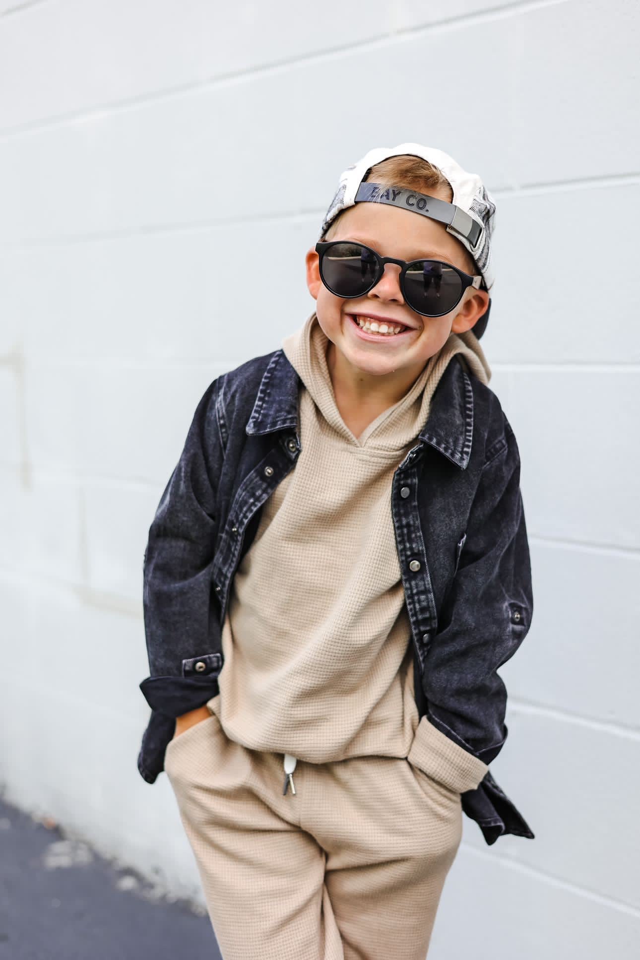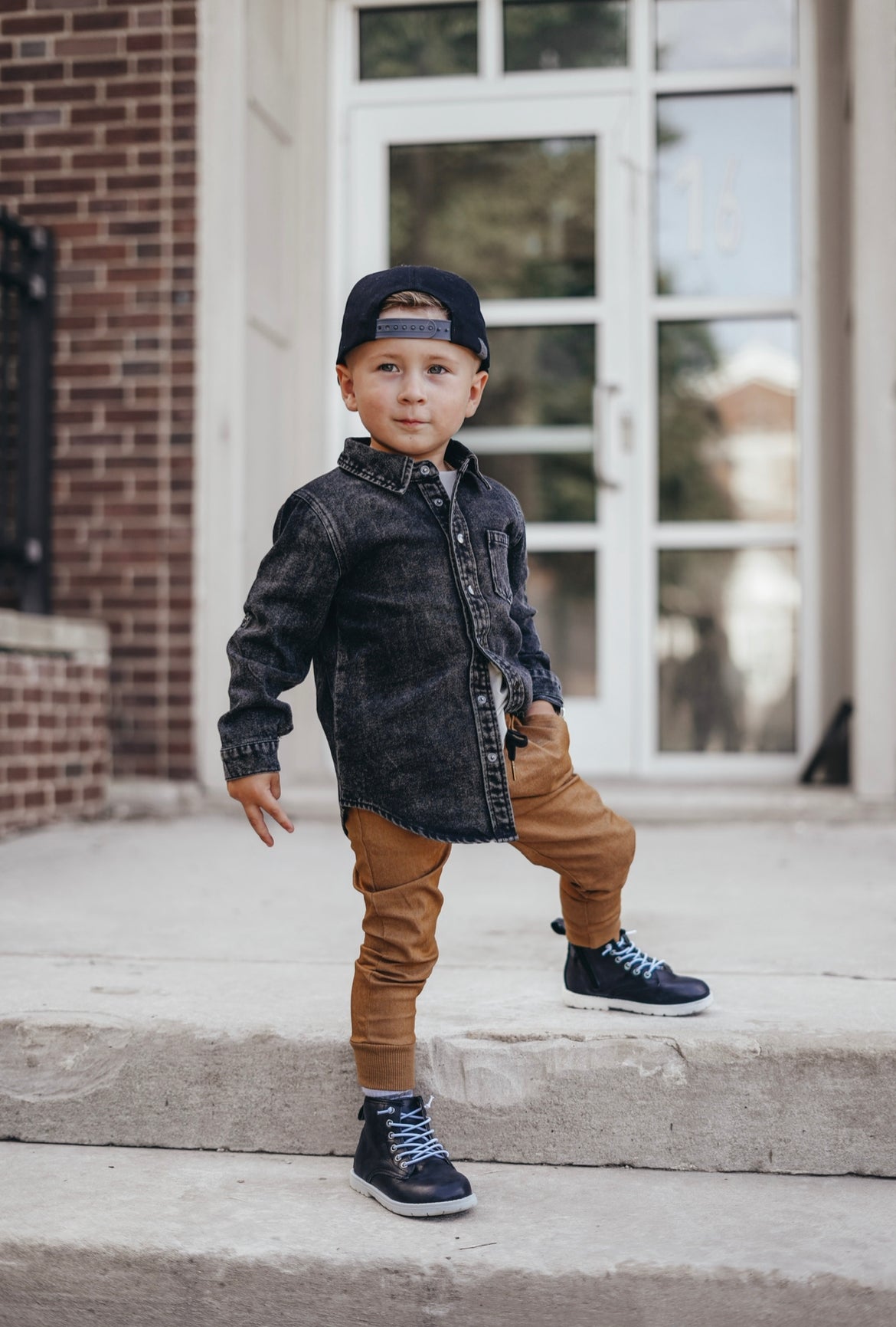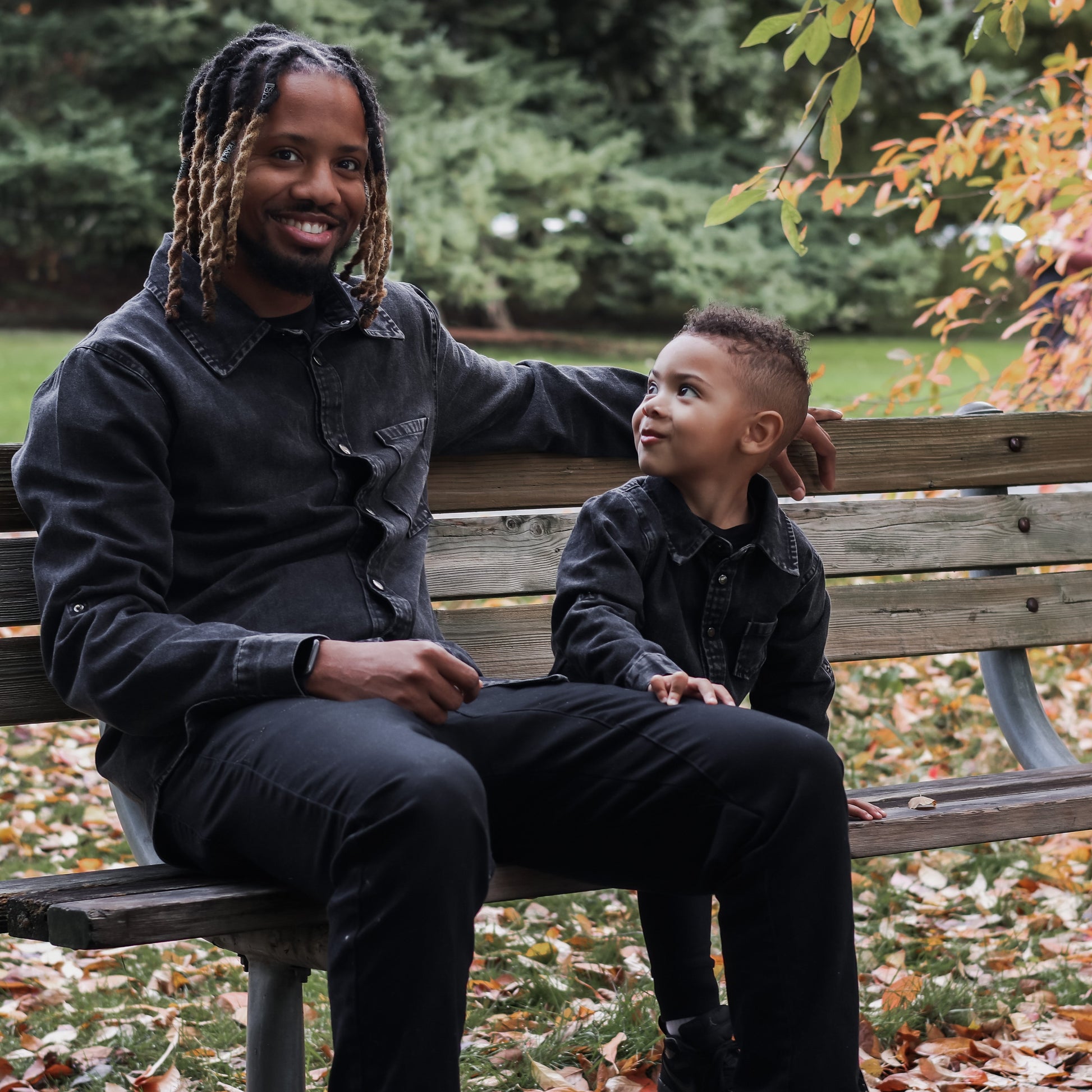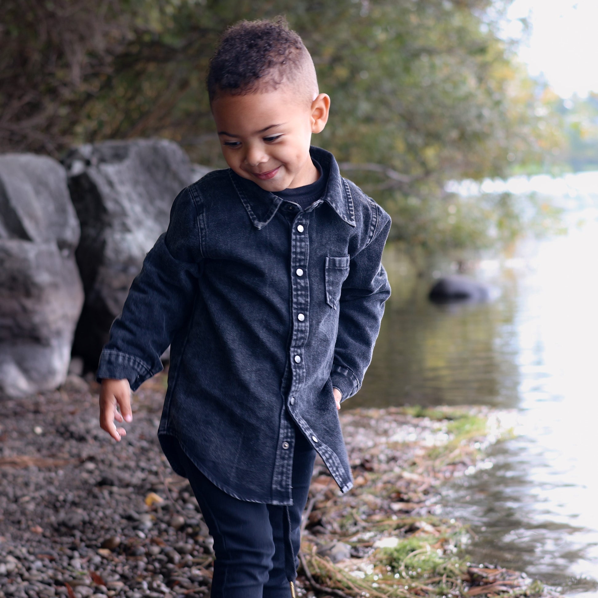 Acid Washed Weekend Shirt is a deep black with leather accents. Texture is everything with this overshirt, perfect for layering or buttoning up for a full look. Dress up or throw on for a comfy outing, you are guaranteed to take on fall in style. Don’t worry, we didn’t stop with the littles! Matching adult sizes available as well for this perfect family pairing.