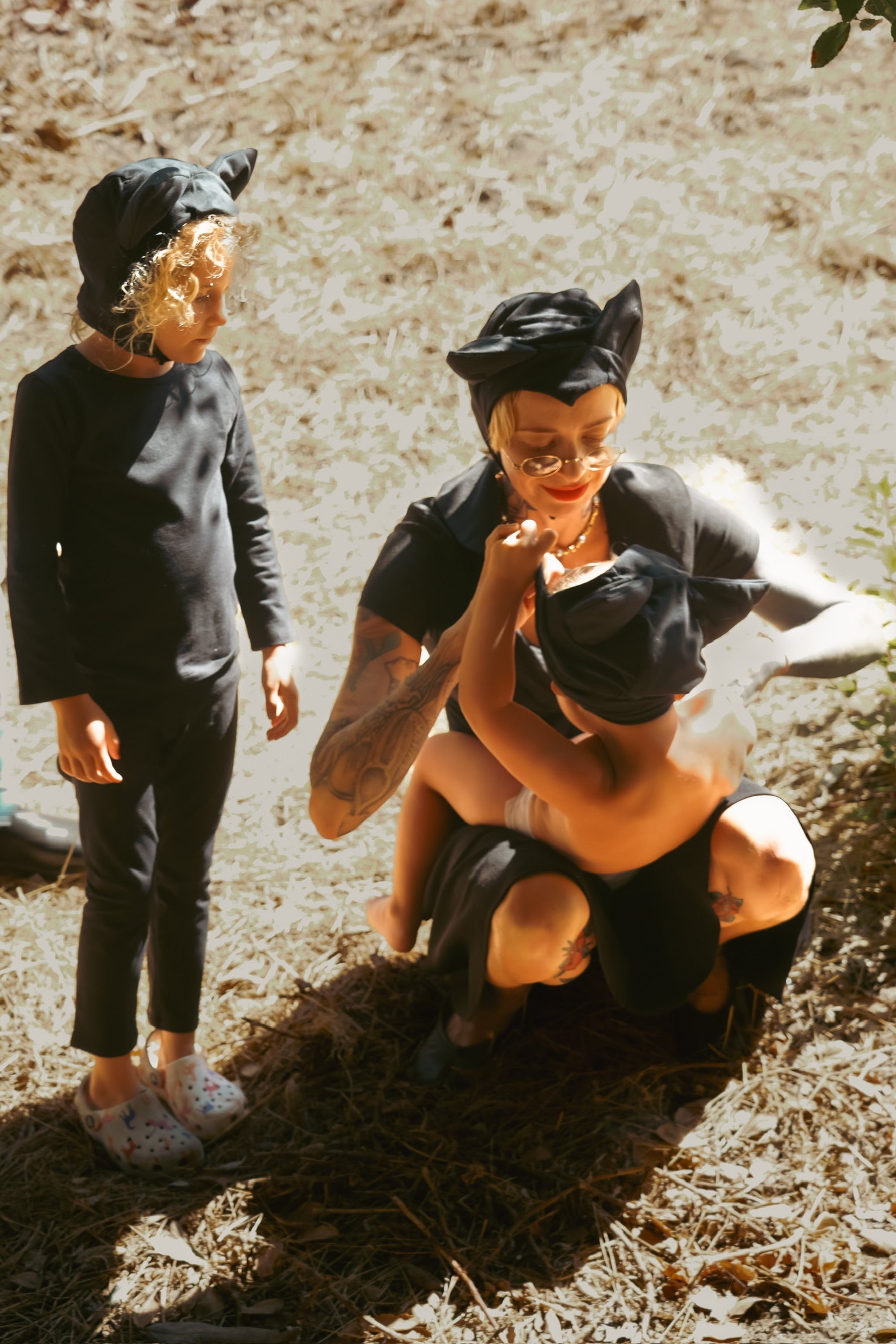This adorable, spooky cat accessory set now comes in an adult size, so you can match your littles on Halloween! Features a soft and stretchy cotton hat with snap closure and elastic-waisted tail. Fits ages 12-Adult.