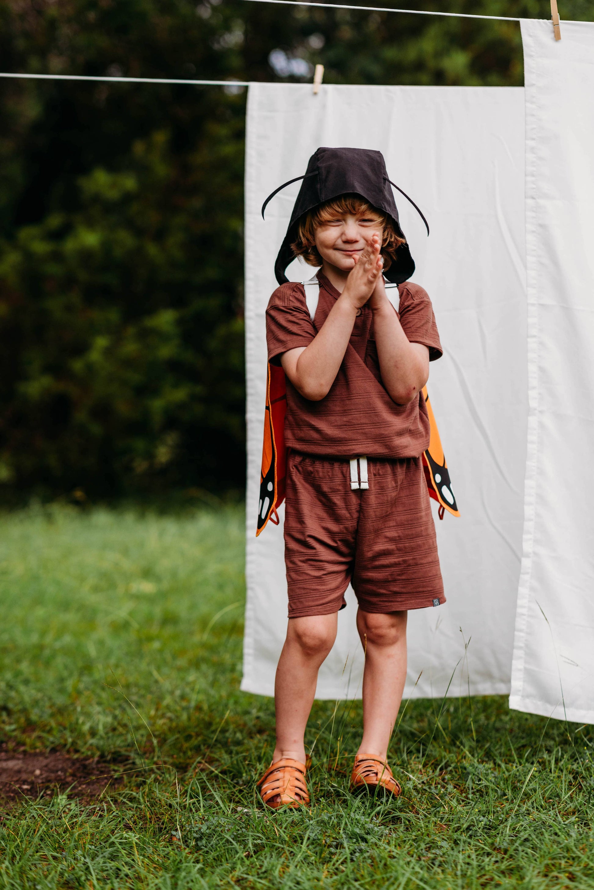 No bug costume is complete without a playful pair of antennae! Our Antennae Hat for kids is made from a luxurious black linen-cotton blend and topped with soft, floppy felt antennae that bounce and bob with every move. Designed to pair perfectly with our Butterfly Wings or Ladybug Costume, it’s a whimsical finishing touch for any little nature lover’s dress-up adventures.