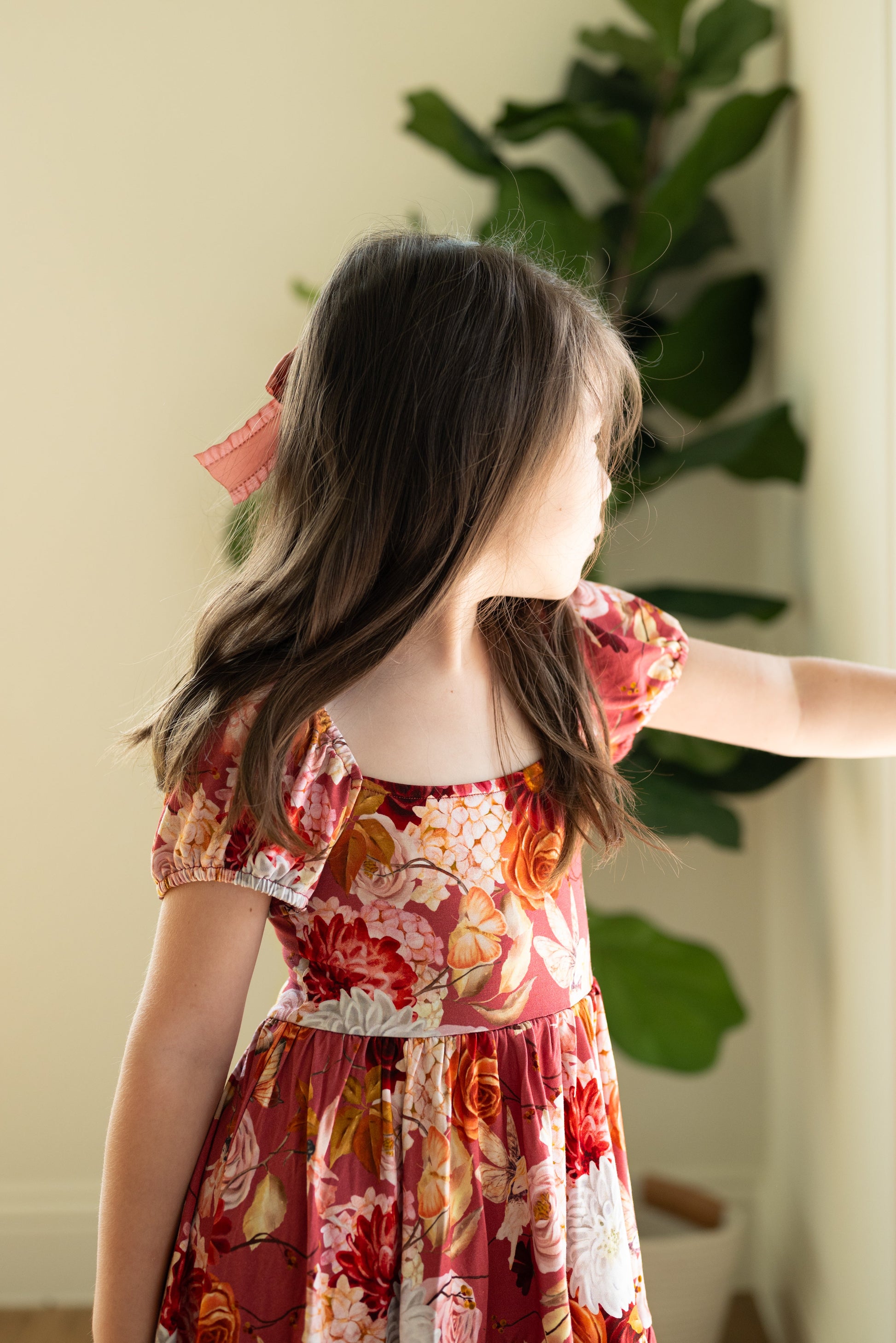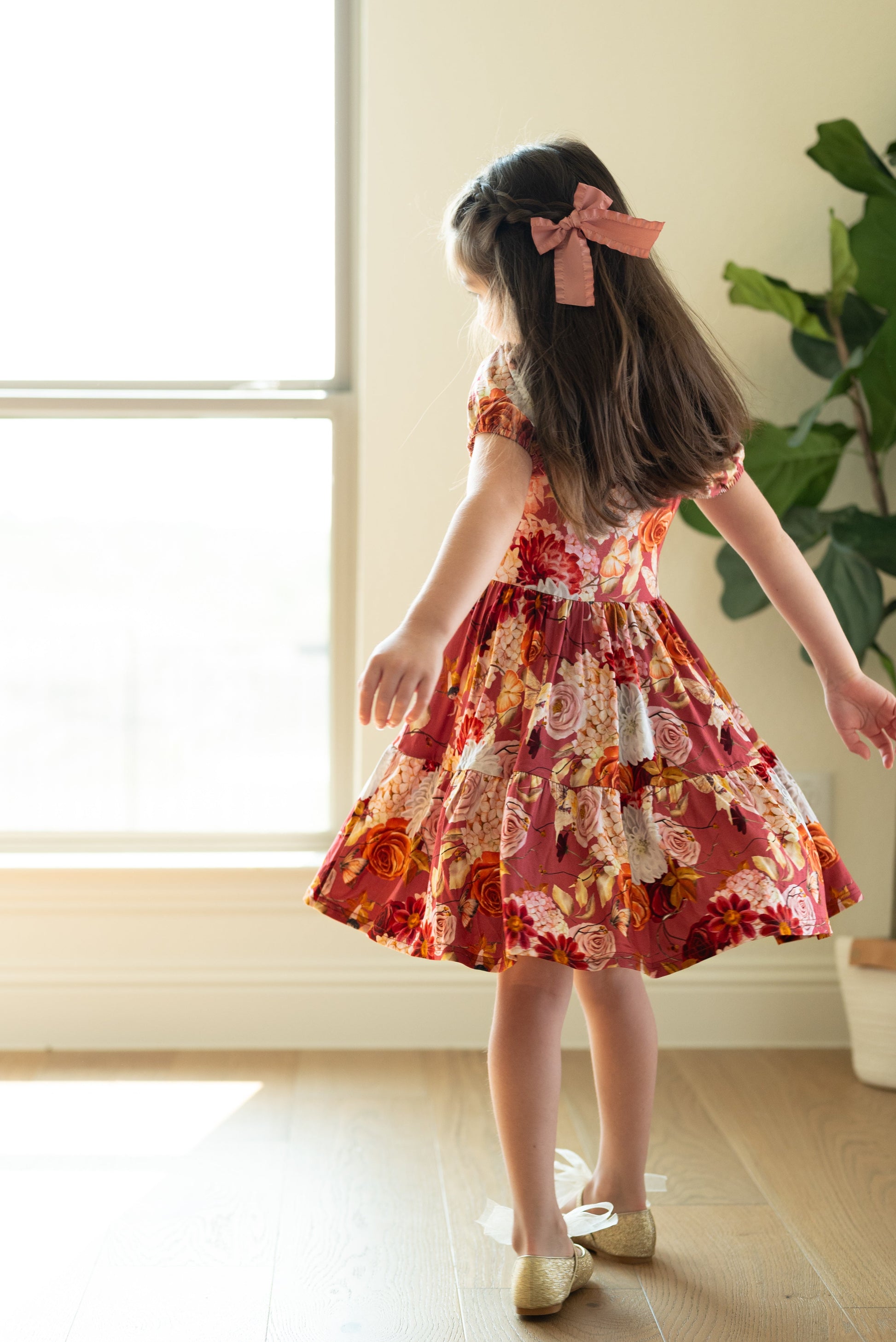 Introducing our Autumn Fairy Blooms puff sleeve twirl dress! With a stunning fall floral design inspired by enchanting Autumn Fairies, this twirl dress is versatile and will add a touch of magic perfect for any occasion. Elevate your wardrobe with the beauty of autumn.