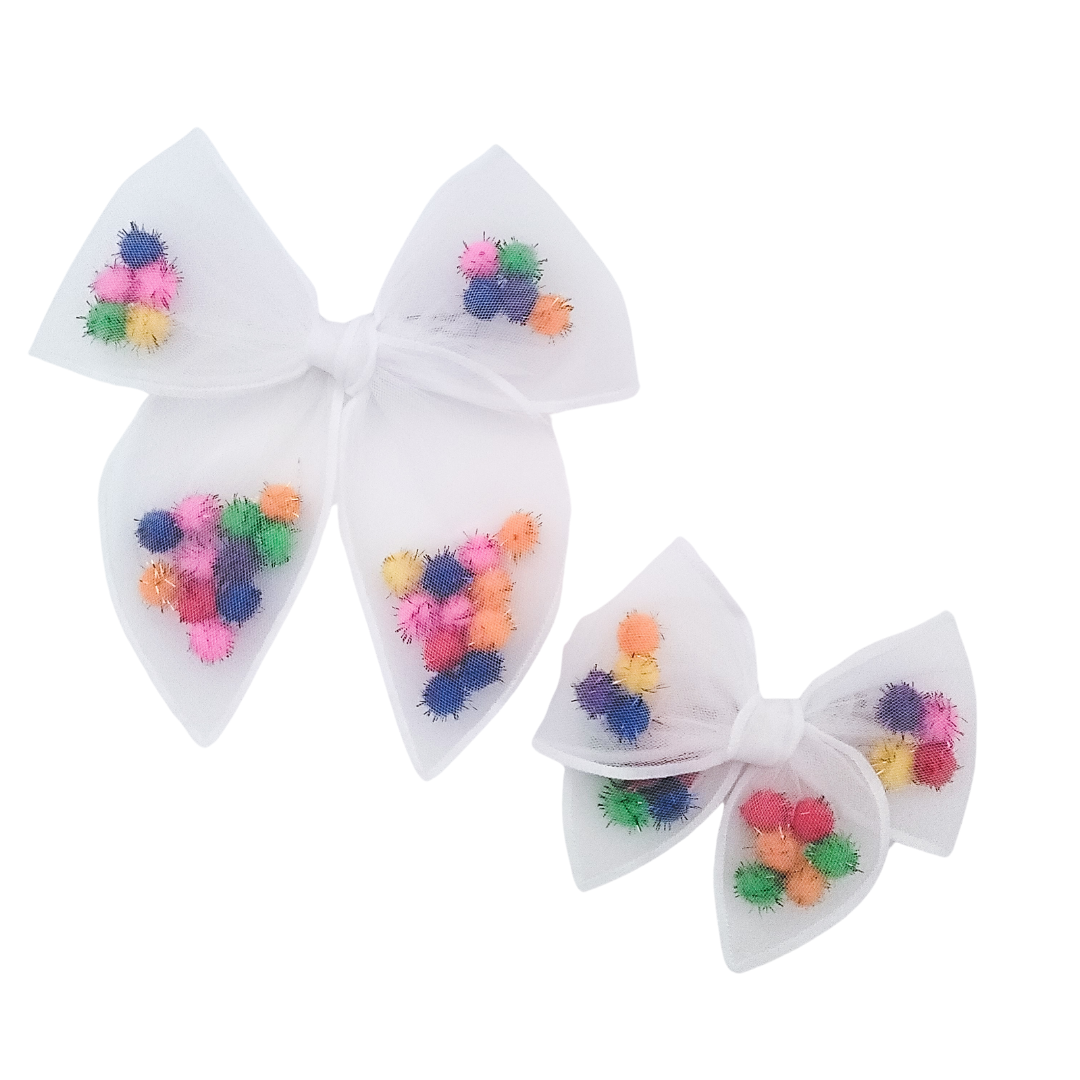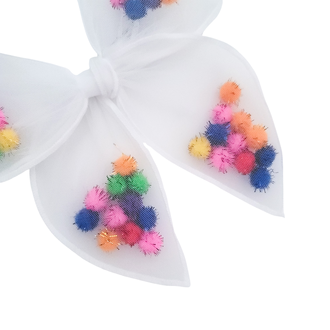Ava Hair Bow | Hand-Tied Bow | Rainbow Pom Shaker