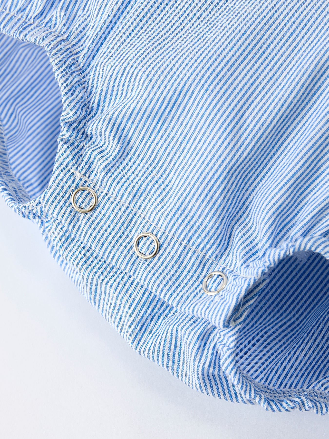 Baby Girls Romper – Blue Striped Smocked Outfit with Short Sleeves