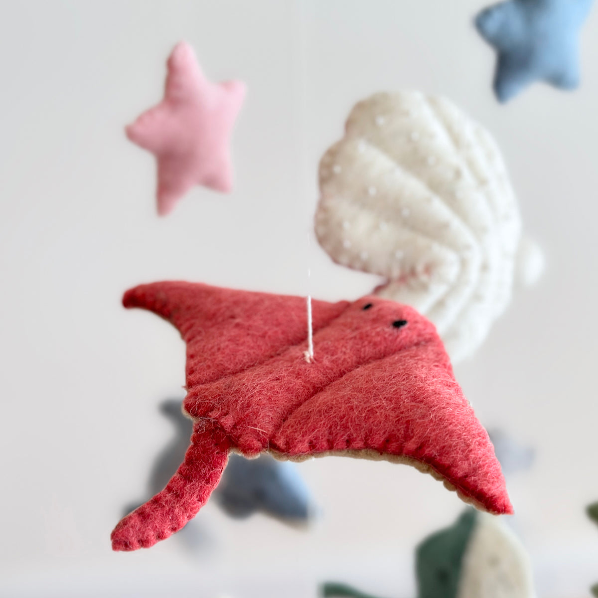 Introduce the enchantment of the ocean to your nursery with our Sea Life Baby Mobile. Delicate scallops, sea turtles, sea horses, whales, dolphins, and stingrays gracefully dance, suspended in the air. This meticulously crafted mobile captures the beauty of marine life, creating a serene ambiance for your baby's sleep. Transform their space into an underwater haven with the Sea Life Mobile.