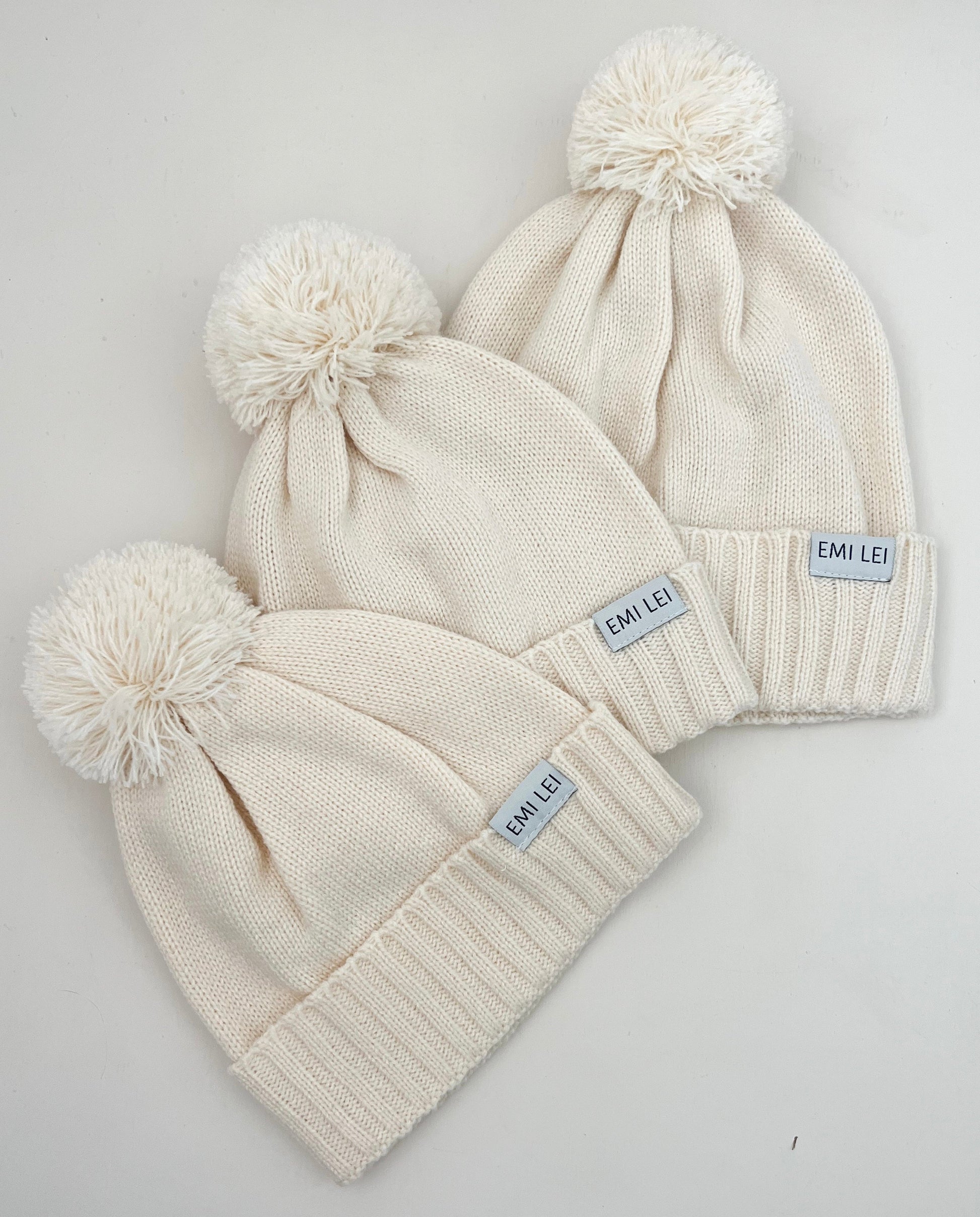 Comfy & cozy pom beanie designed by us, here in SoCal!! Available in neutral colors & made to be your go to, favorite beanie all season long!!