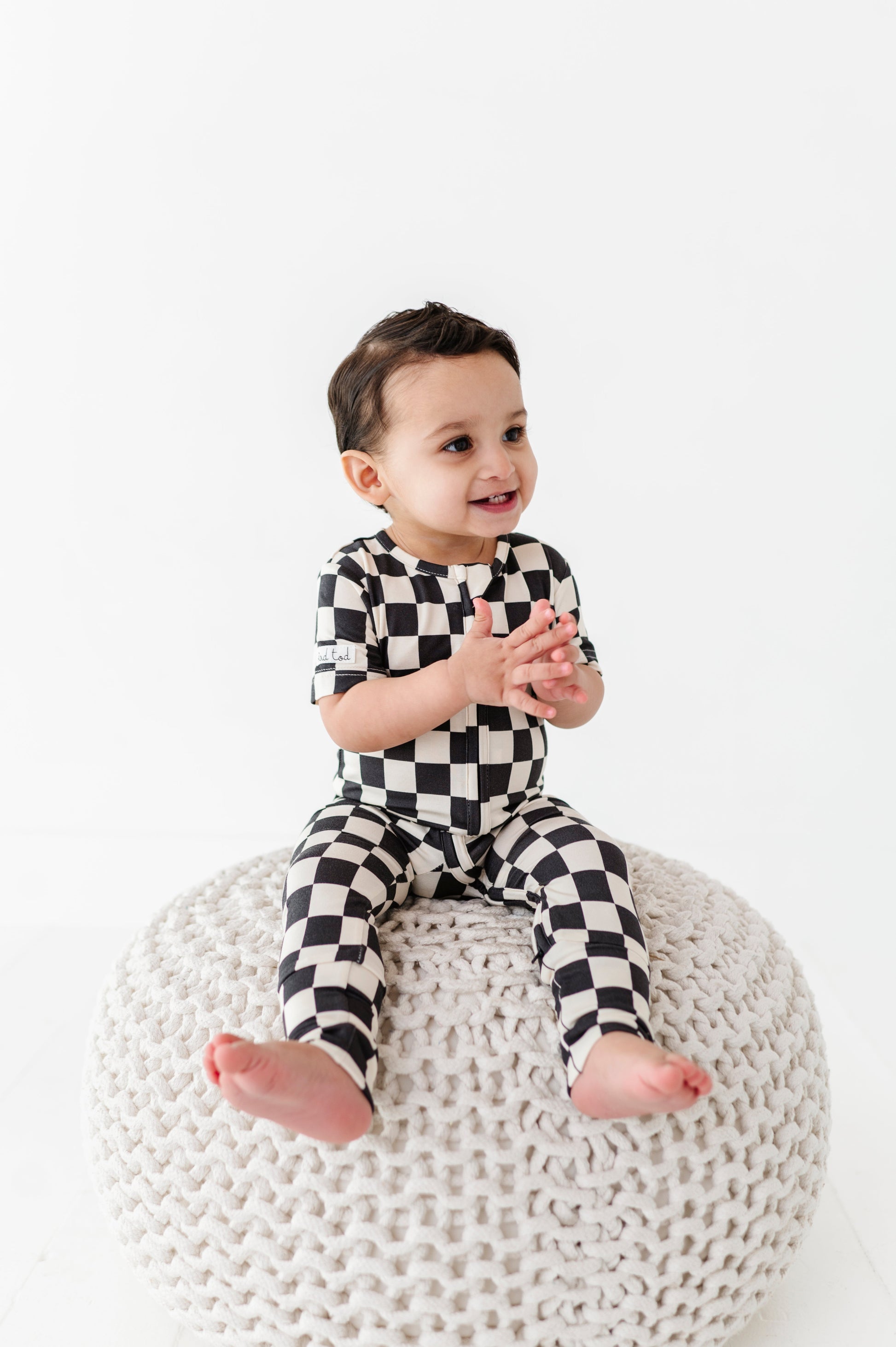 Your little one just found their new favorite pajamas! Our Black & White Checkered Bamboo Short Sleeve Onesie combines next-level comfort with a bold, modern style. Made from buttery-soft, eco-friendly bamboo fabric, this onesie features a sleek black-and-white checkered print that’s perfect for both boys and girls.