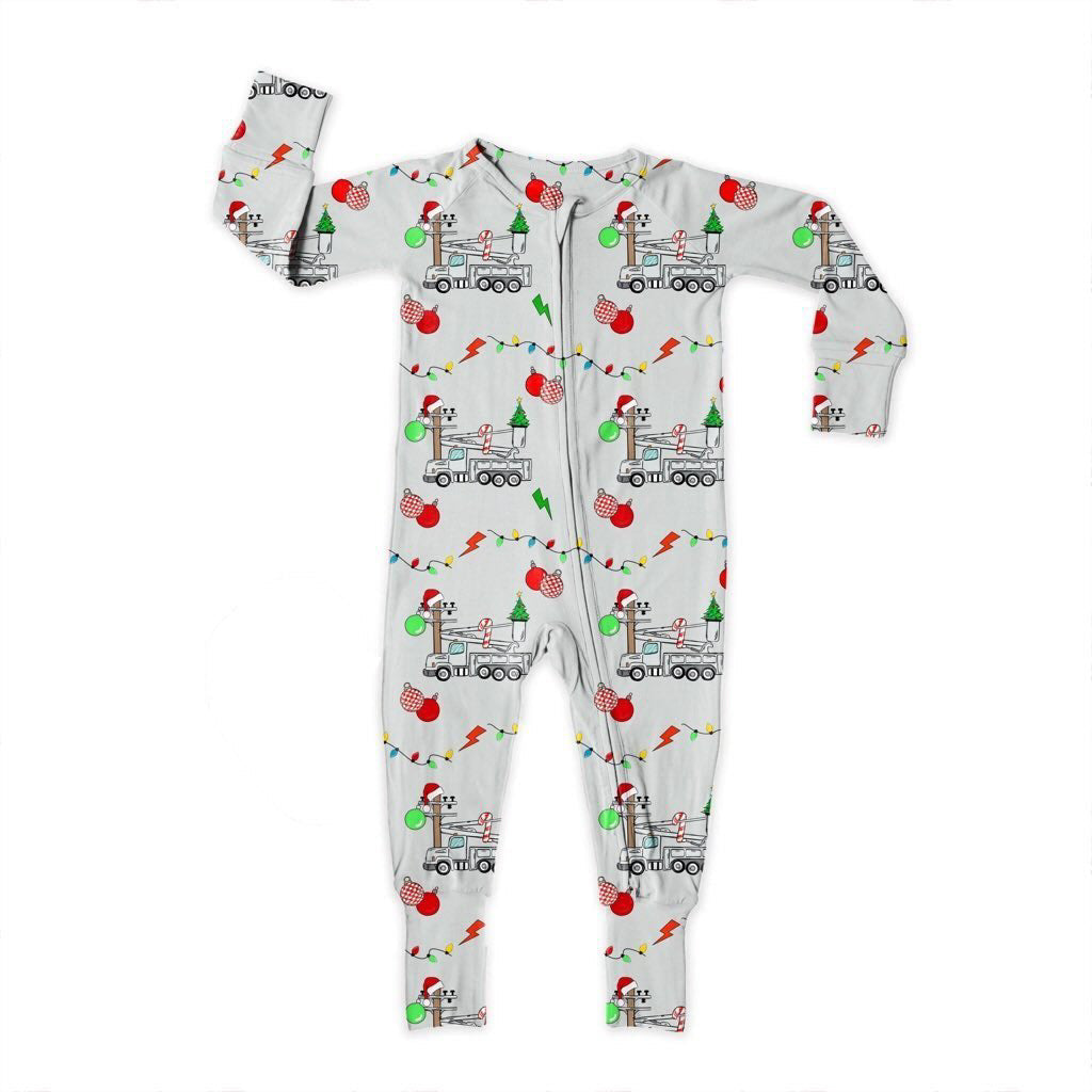 Bamboo Zipper Footie, Christmas Lineman
