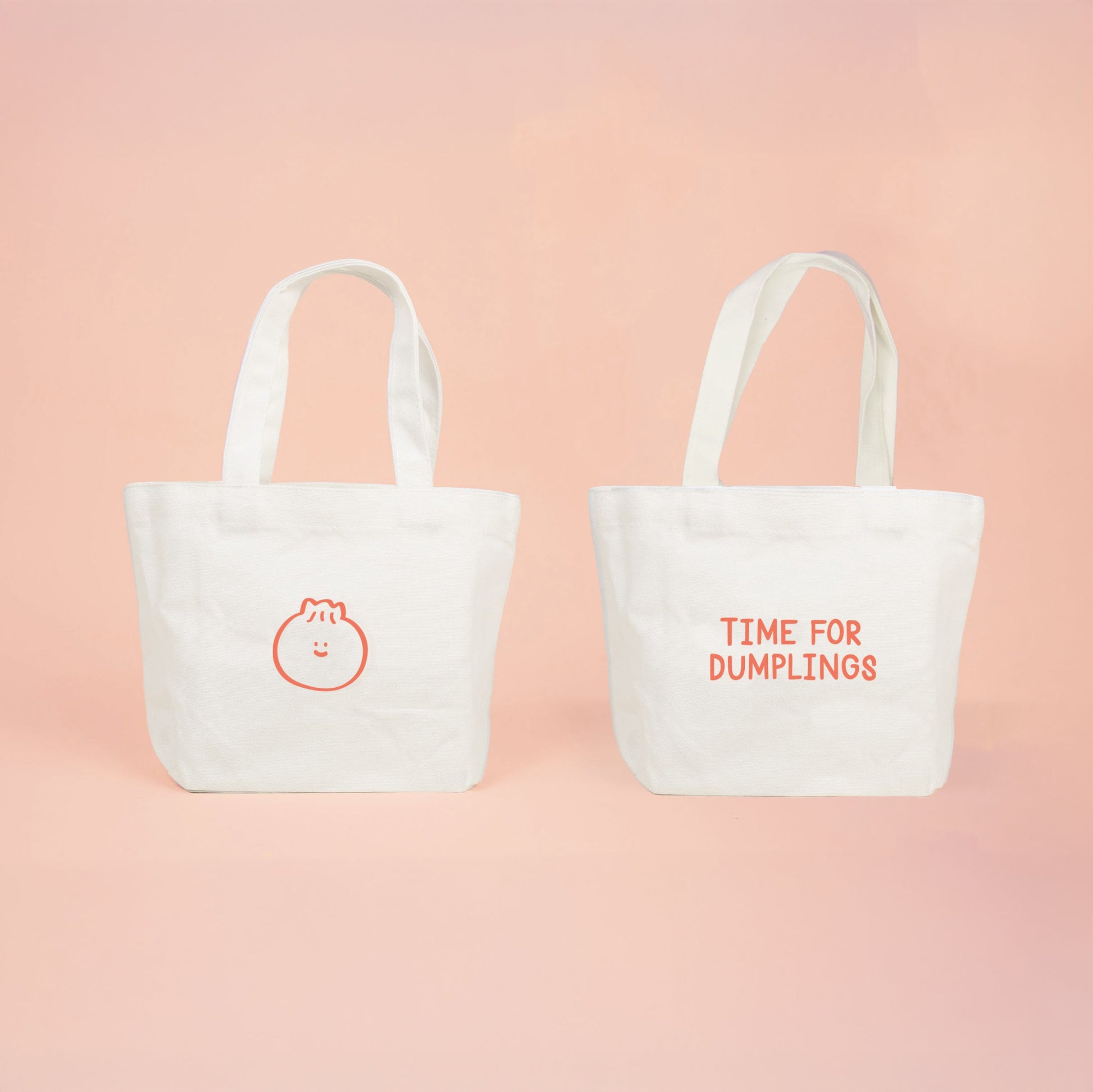 A mini tote perfect for quick trips and light carrying needs, featuring a charming bao dumpling design that pops against the clean, white canvas. With its open-top design and interior pocket, this tote makes it easy to grab whatever it is you're bringing along your outings.