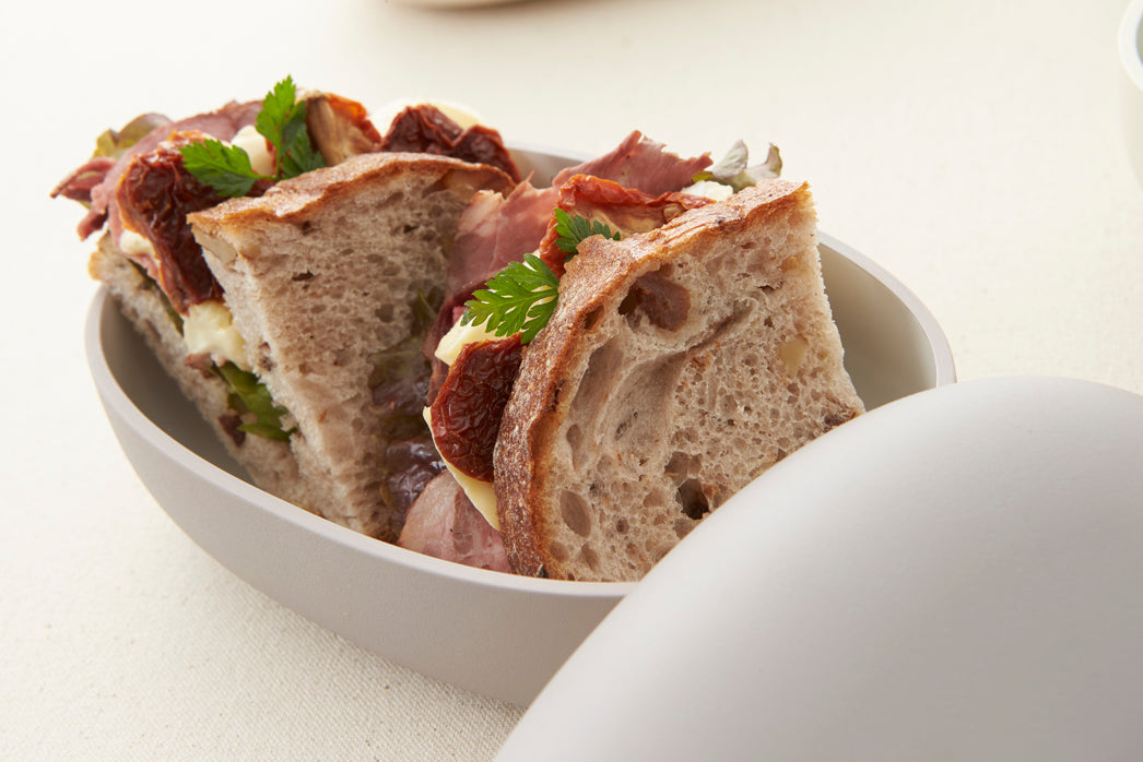Our petite, rounded-style lunch box is ideal for snacks, sandwiches, or fruits. Its round bottom facilitates easy cleaning, and the dome-shaped inner lid is perfect for serving multiple meals. With a powder-coated lacquer, its unique texture adds a touch of luxury.