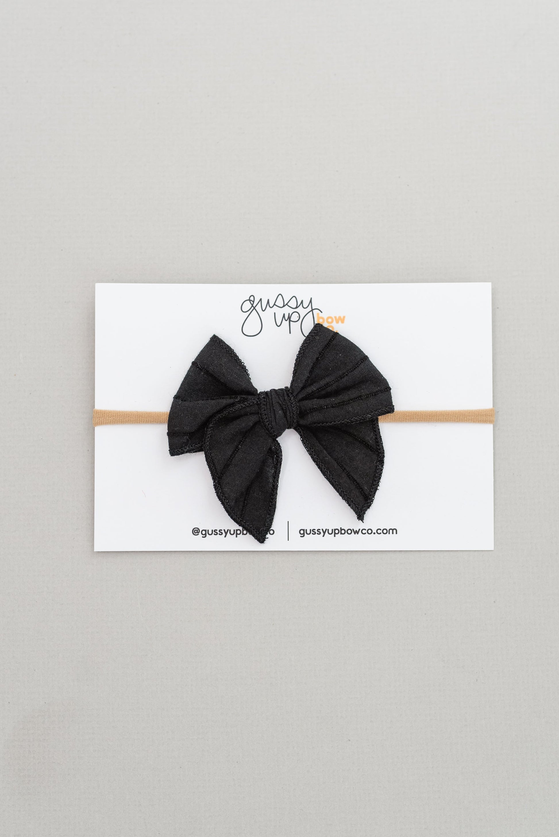 - Mini Bow on Headband: 2 1/2 x 3 inches on THE SOFTEST nylon band on the planet! Our ultra-stretchy headbands will not leave a mark on your sweet babe, and they’re truly one-size-fits-all! Available in 2 colors.