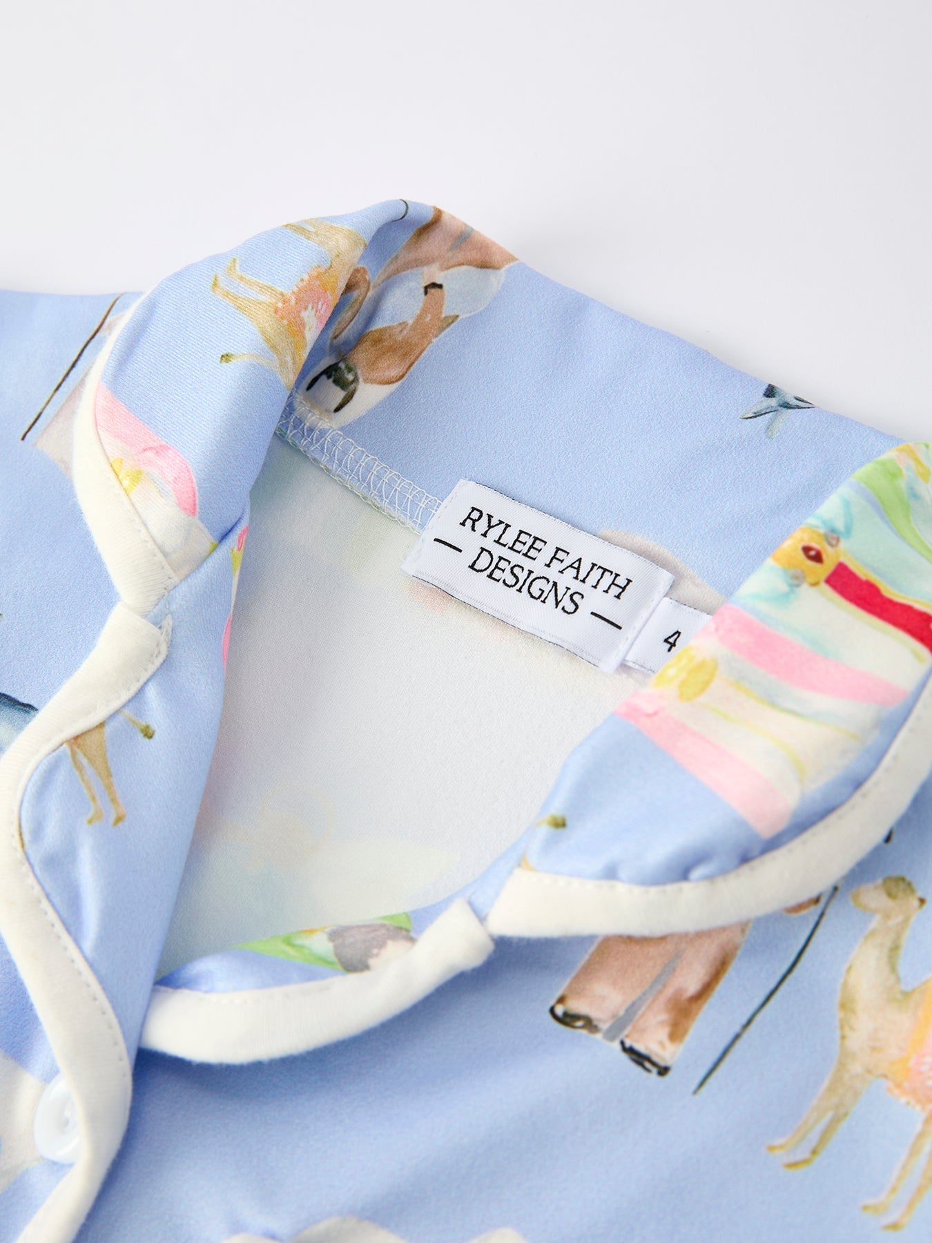 Blue Christmas Nativity Pattern Girls Pajamas Set