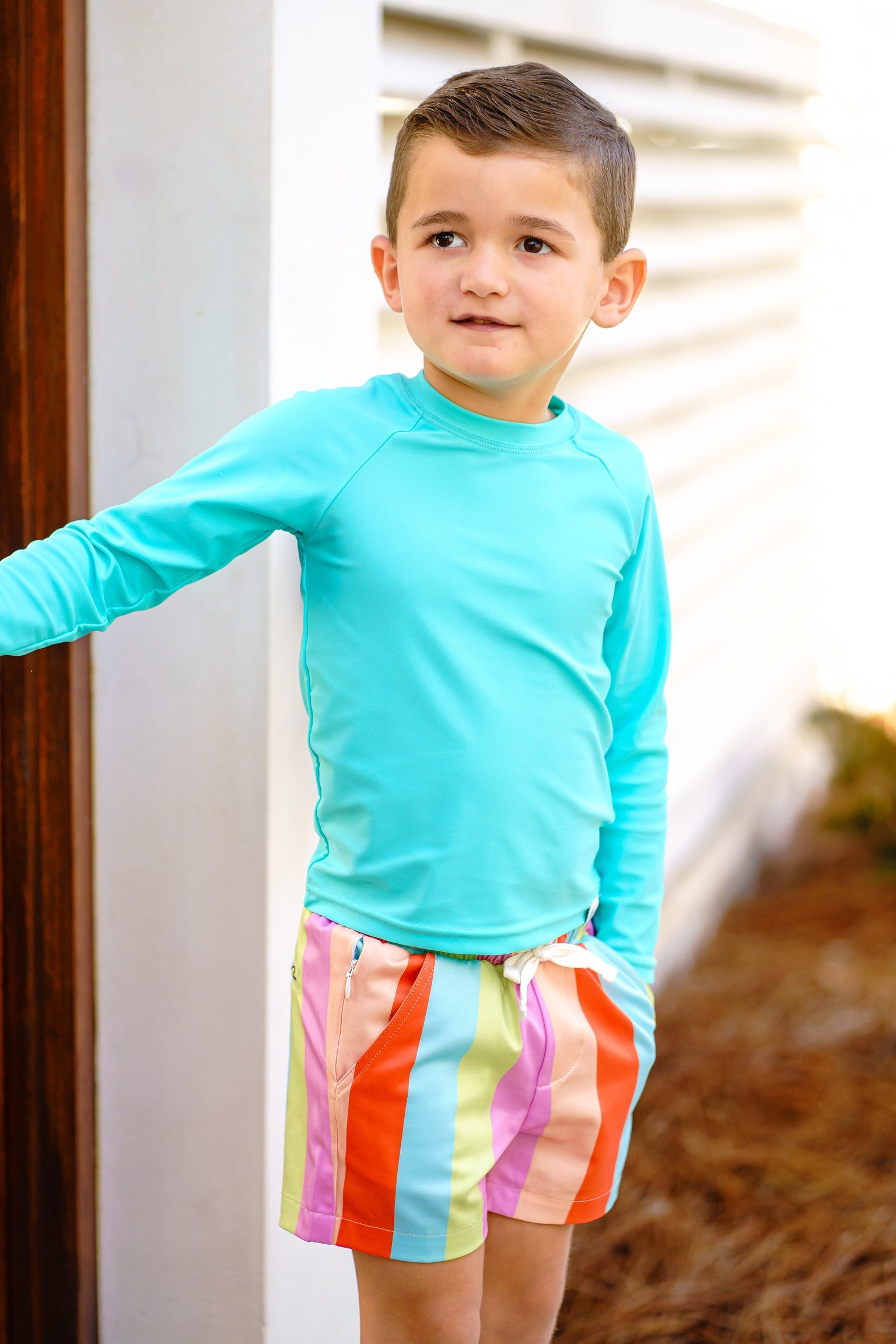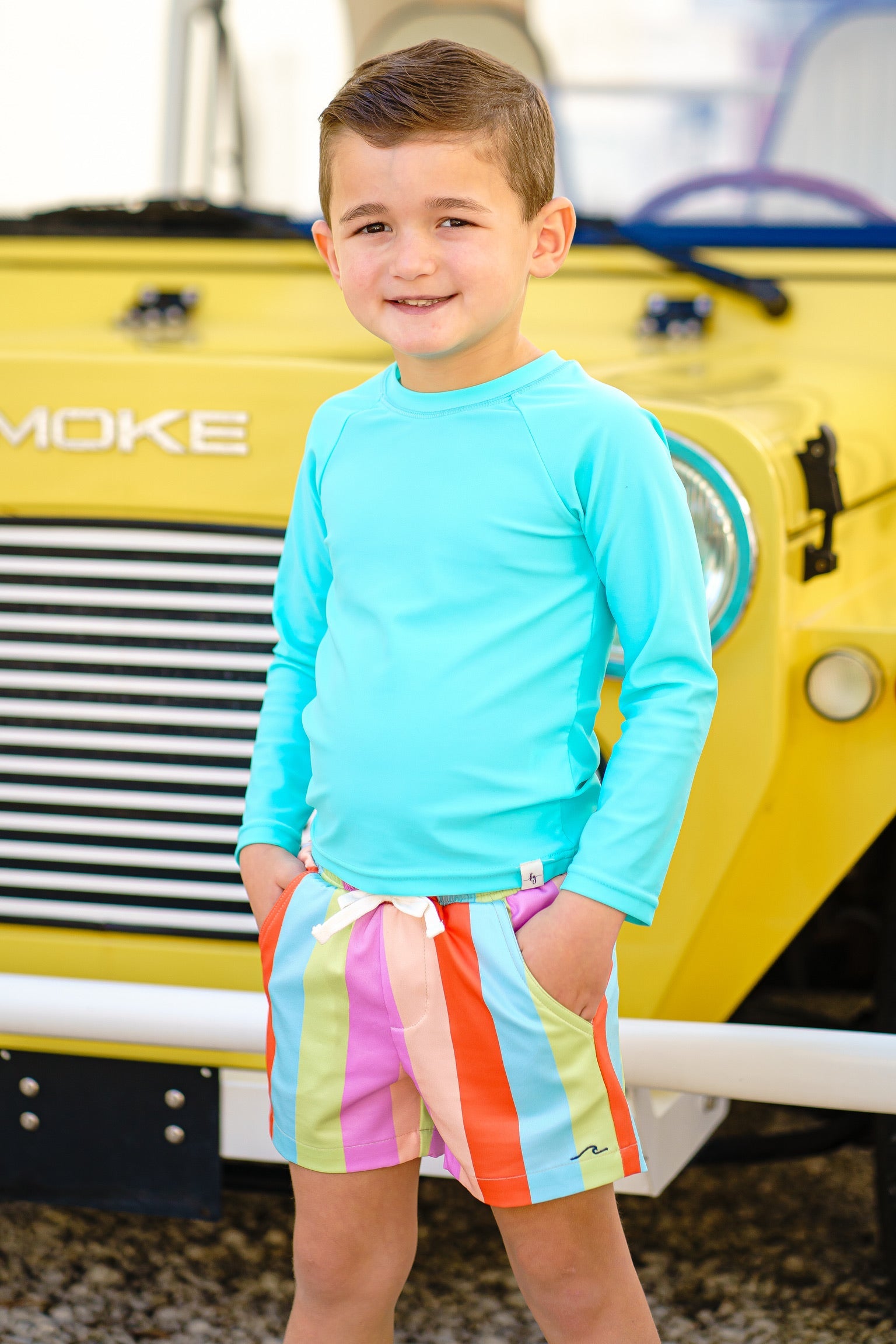- Made from UPF swim material (80% nylon, 20% spandex)
