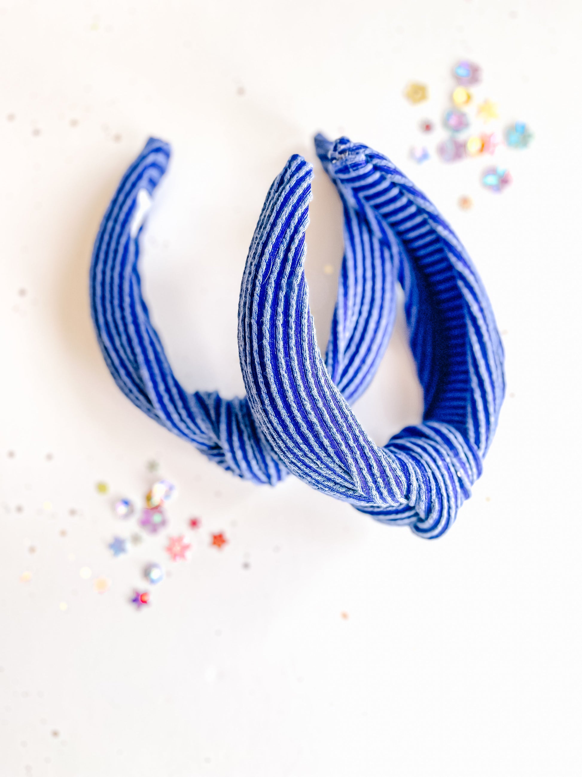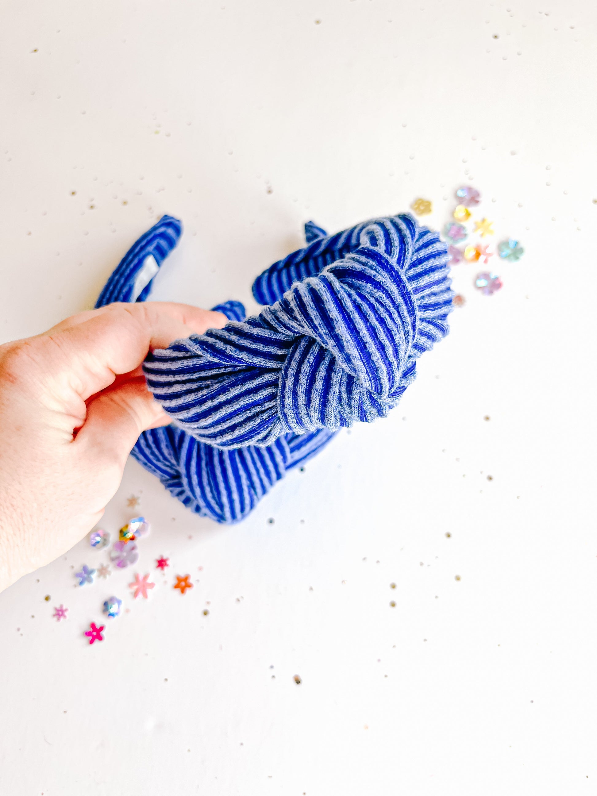 Blue Ribbed Knotted Headband