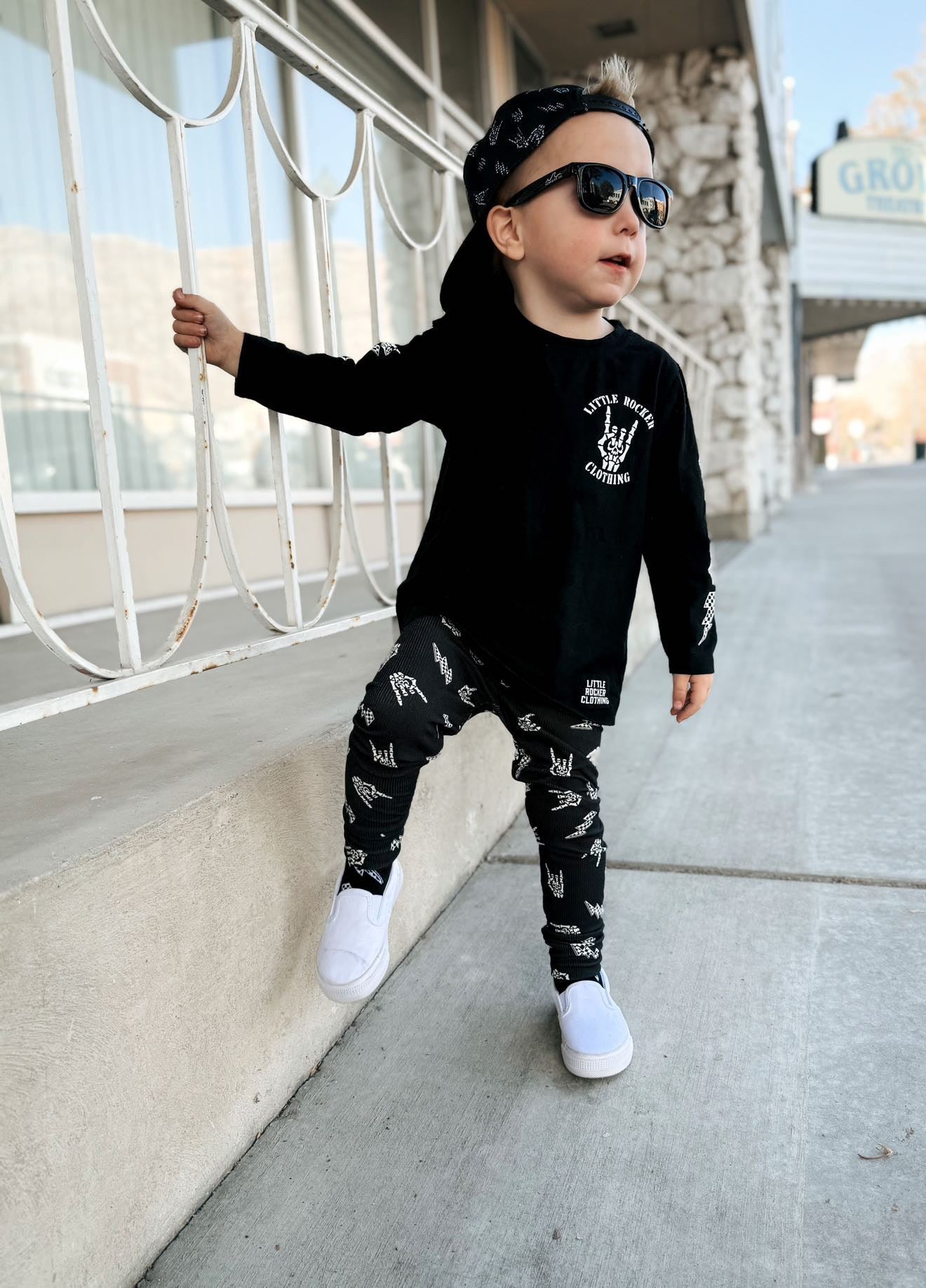 Whether they're rocking out at playtime or relaxing at home, these leggings are designed to keep your mini rocker comfy and cool in every way!