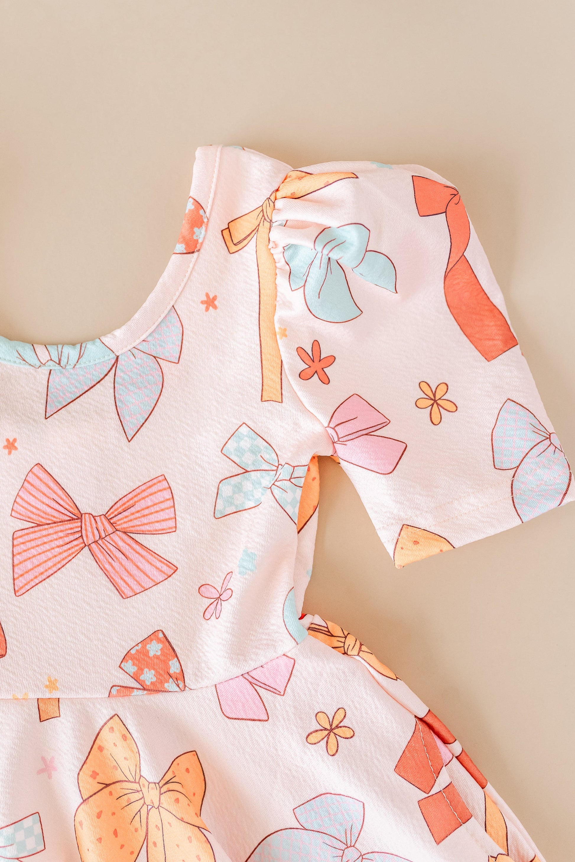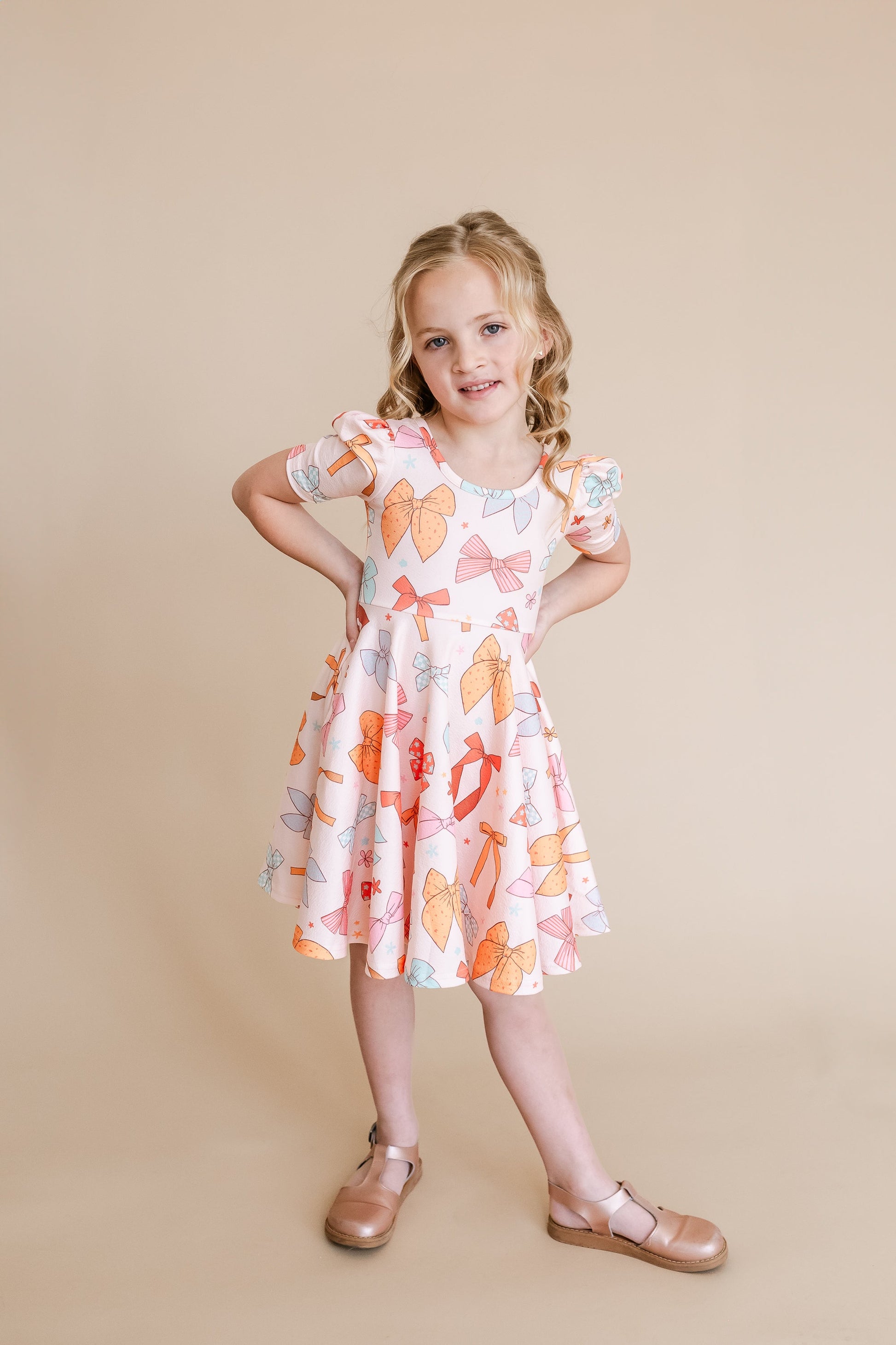 Bow Puffed Sleeve Spin Dress
