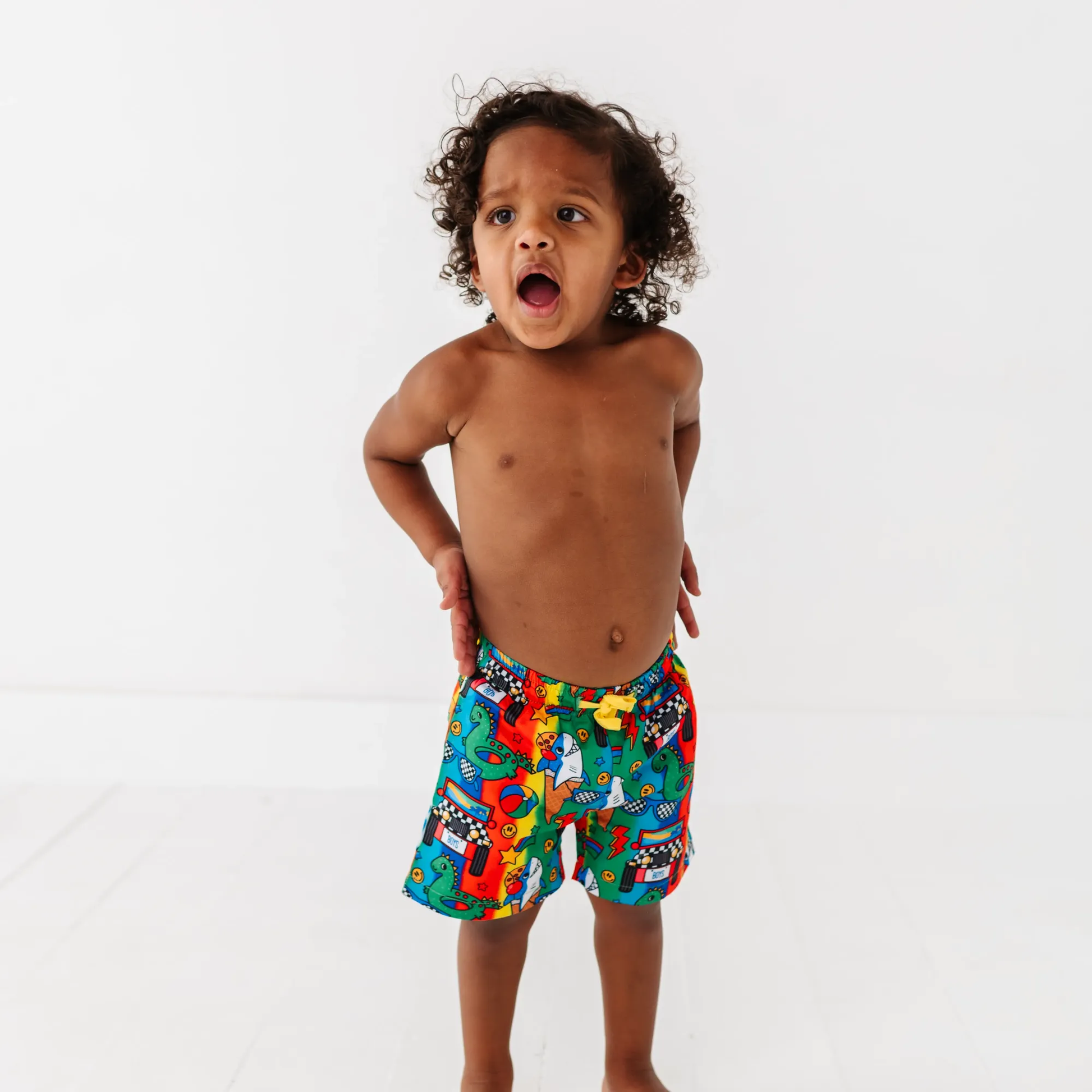 We just added **brand new** swimwear to our line! Great for the summer months and sibling matching! Our suits are great for splashing. playing, and riding waves!