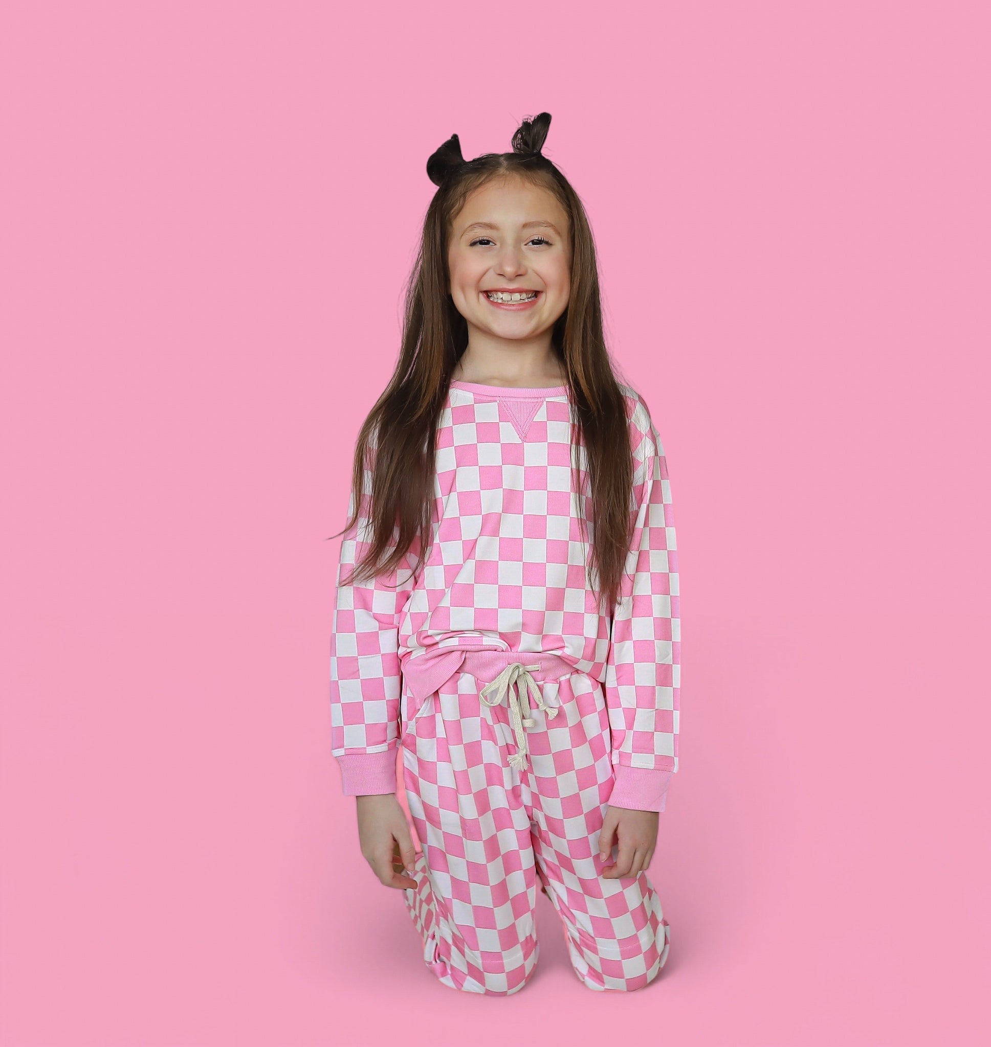 Get ready to cozy up in our Bubblegum Checkers Dream Pullover. With its playful pink and white checkers, this pullover is not only stylish but also comfortable, breathable, and soft - perfect for chilly weather. Loungewear never looked so good!