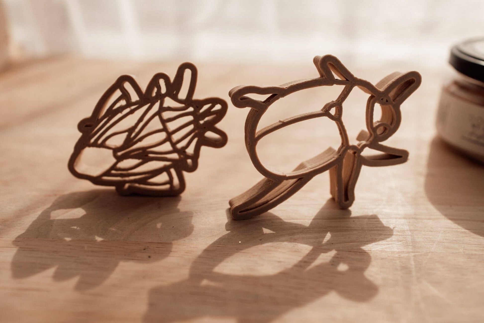 Made from: recycled wood-mill sawdust and PLA plastic. We only use biodegradable elements in our cutters, PLA plastic is derived from plant-based sources such as fermented corn starch and the sawdust we use is recycled and untreated. We are committed to natural, non-toxic and eco-friendly craftsmanship.