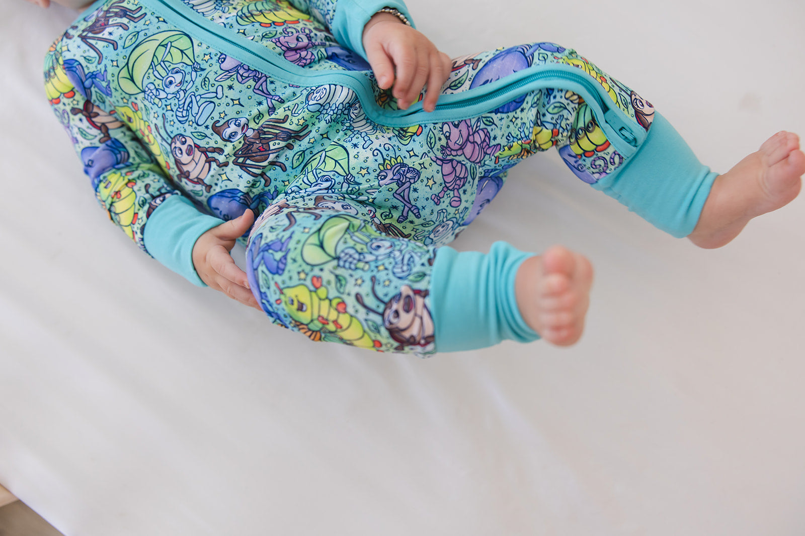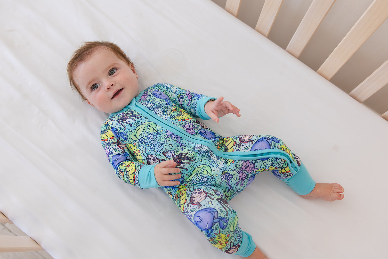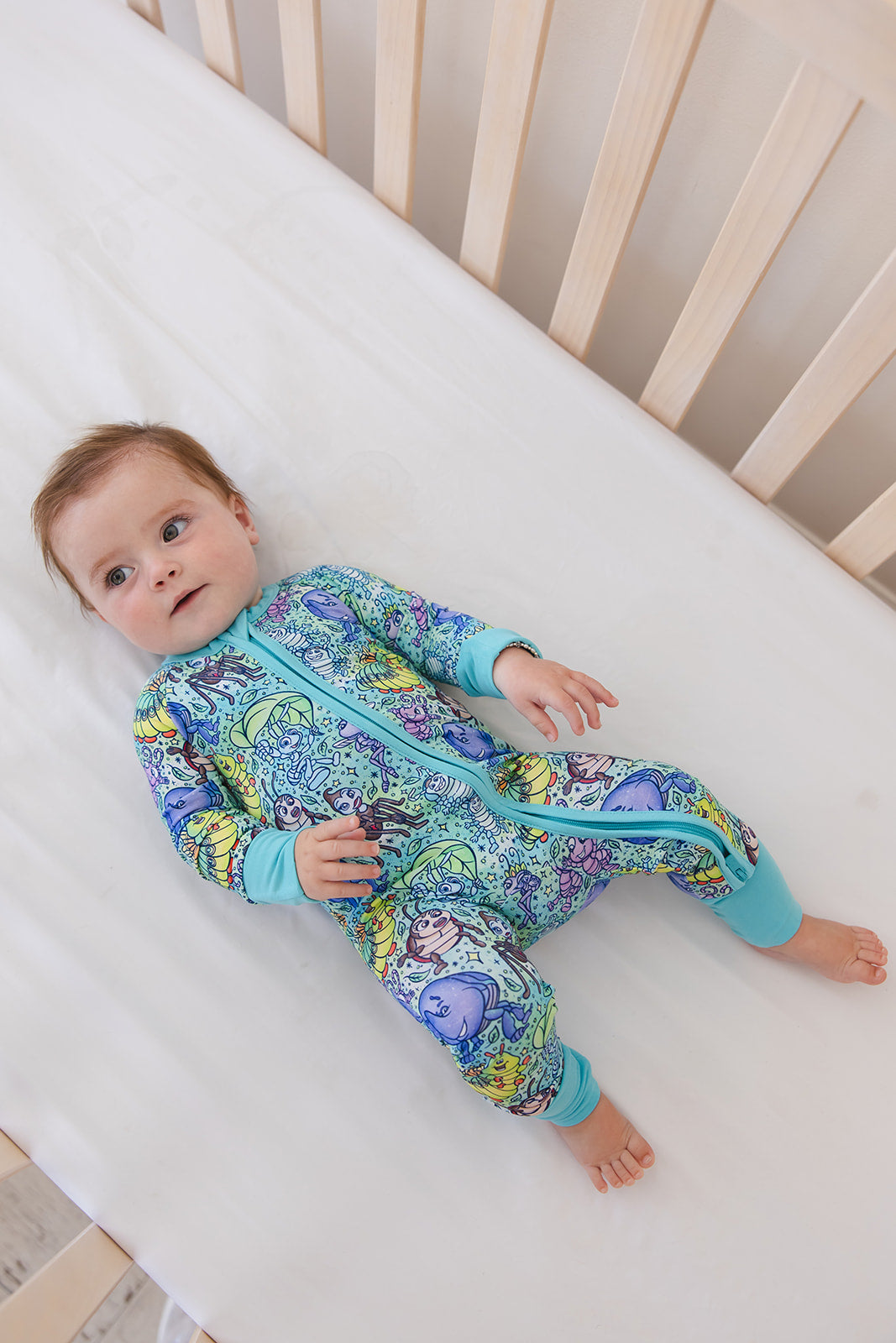 Our zippies are designed for ultimate comfort and practicality. Crafted from hypoallergenic, ultra-soft bamboo, they’re not only stretchy and breathable but also promote thermoregulation to keep your child comfortable in any season. Designed to grow with your little one, they feature magical stretch that ensures a comfortable fit while lasting three times longer than standard sleepwear.