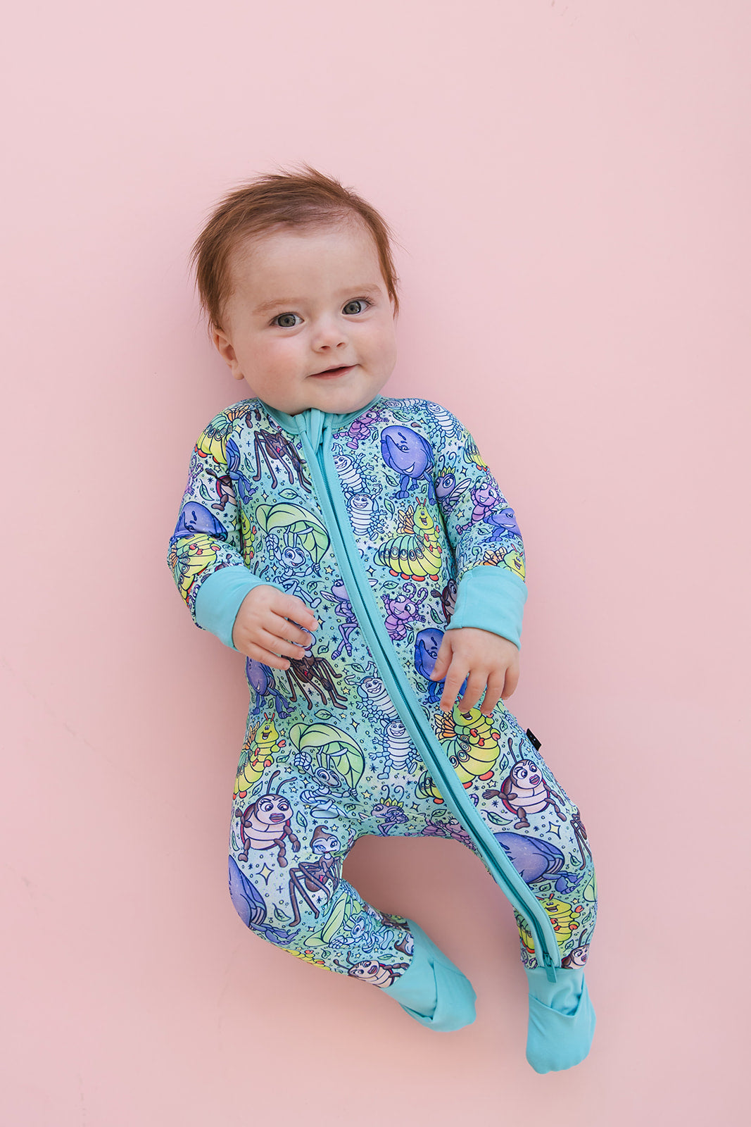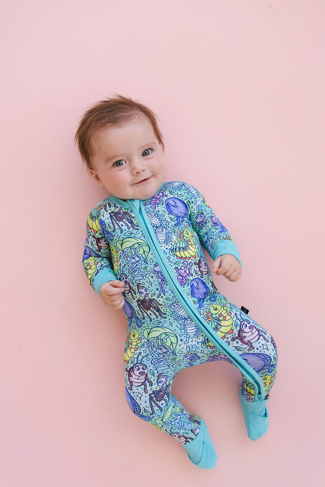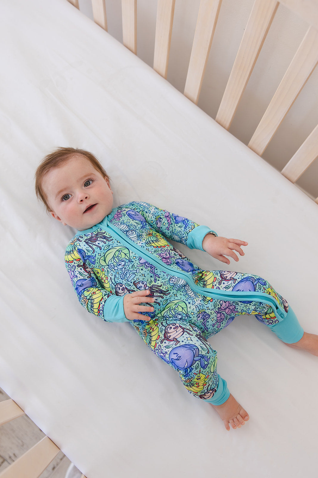 Our zippies are designed for ultimate comfort and practicality. Crafted from hypoallergenic, ultra-soft bamboo, they’re not only stretchy and breathable but also promote thermoregulation to keep your child comfortable in any season. Designed to grow with your little one, they feature magical stretch that ensures a comfortable fit while lasting three times longer than standard sleepwear.