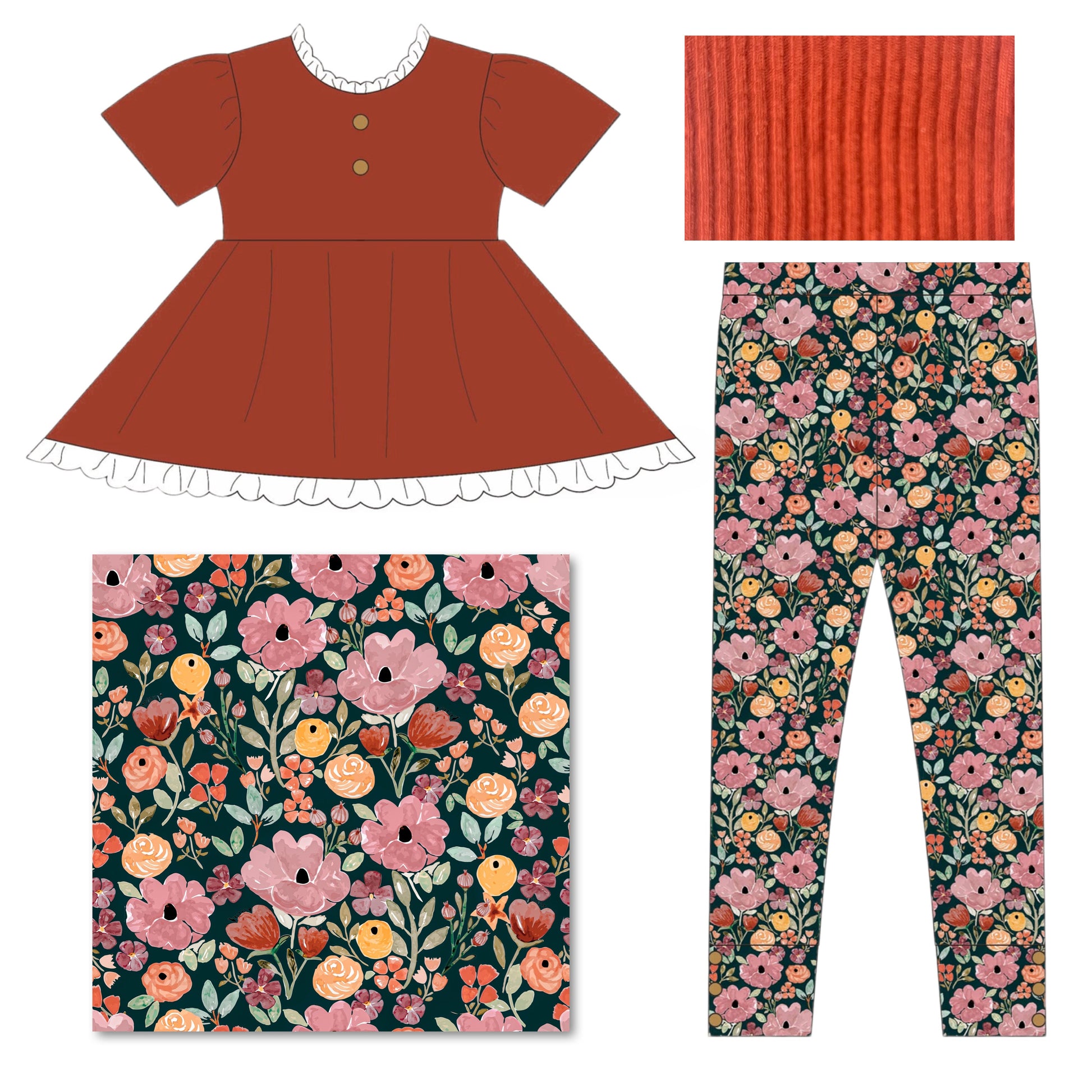 Burnt Orange Floral Fall Adele Set (Short or Long Sleeve) Preorder