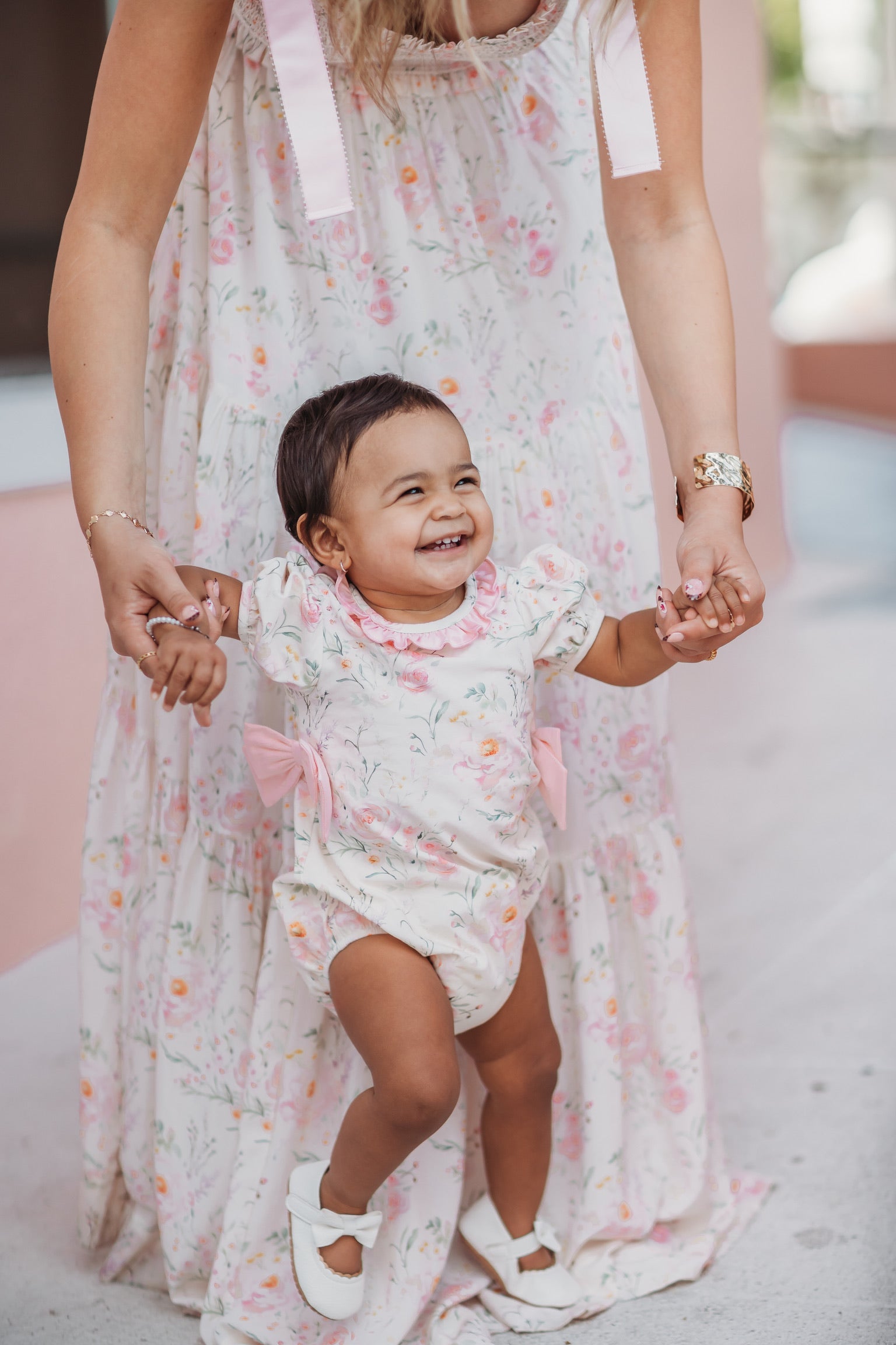 Meet the Camellia Romper—a darling one-piece designed to keep little ones looking adorable all day long. Blooming with sweet floral prints and finished with charming bow accents at the waist, this romper brings joy to playtime and special occasions alike. Soft, comfortable, and bursting with personality, it's the perfect pick for parents who want their babies dressed in style. A playful essential that grows with your little one's adventures.
