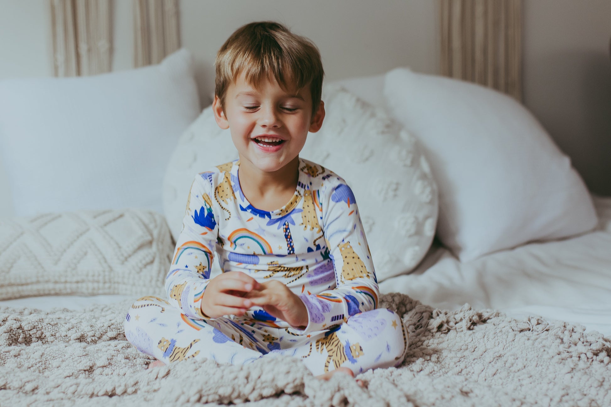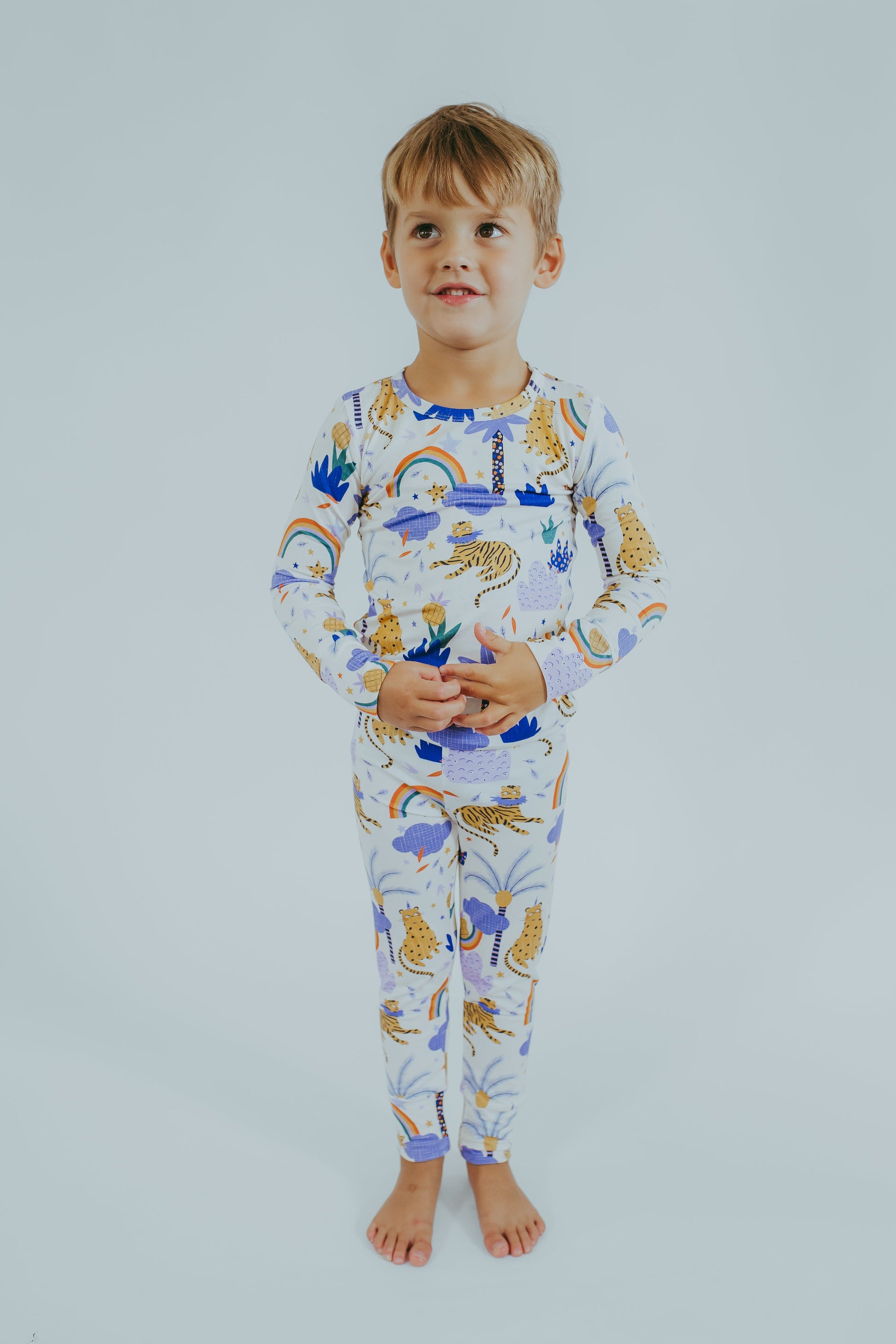 The coziest jammies ever! Dress your toddler in the same soft and stretchy Smörsoft™ bamboo viscose as our Footies, but in a two-piece set that’s easier for potty training. Featuring long sleeves and matching long pants, our two-piece sets are designed with extra length so they’ll fit longer than the average PJs. Mix and Match with blue and cream!