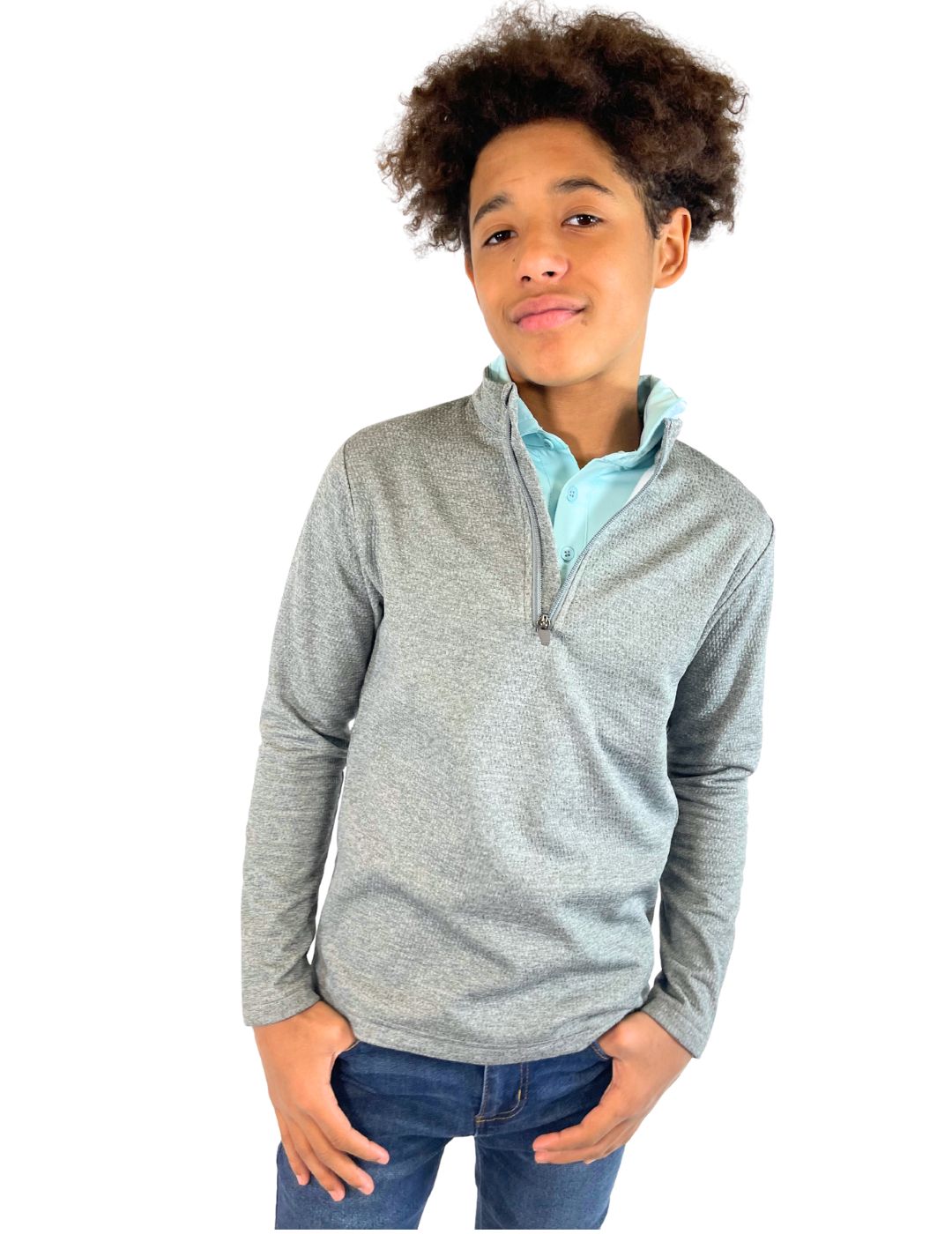 Quarter Zip for Adjustable Style: The quarter-zip design adds a practical touch, allowing your youth boy to customize his style and regulate temperature. Chase effortlessly transitions from a casual layer to an active essential.