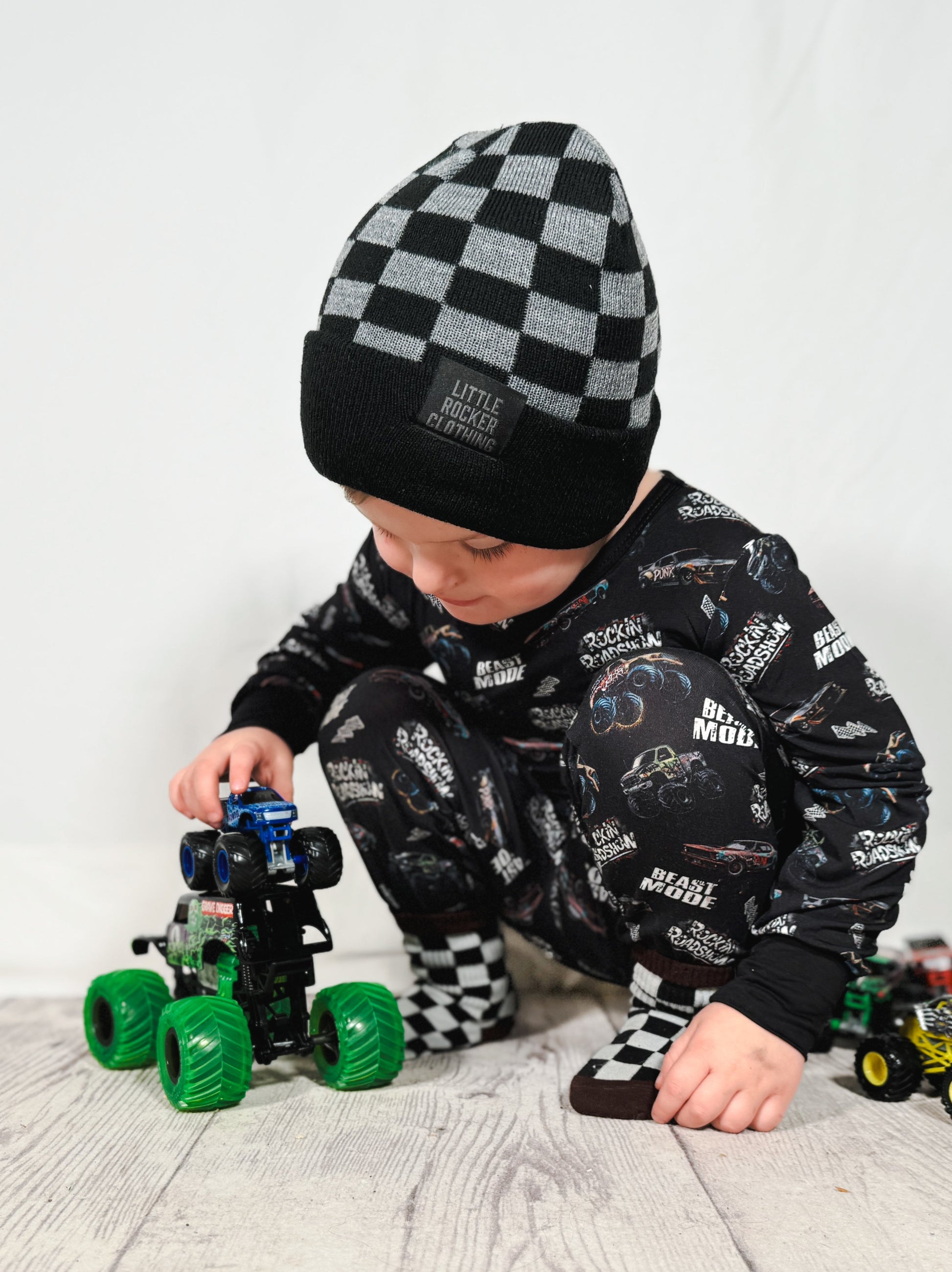 Elevate your little one's winter style with our Little Rocker Clothing exclusive checkered color beanie, featuring a custom woven label for that extra touch of uniqueness. Crafted for comfort and warmth, this beanie not only keeps them cozy but also lets them showcase their rockstar spirit with a personalized flair. These also fit the mama's. Make sure to pick one up for both you and your little one!