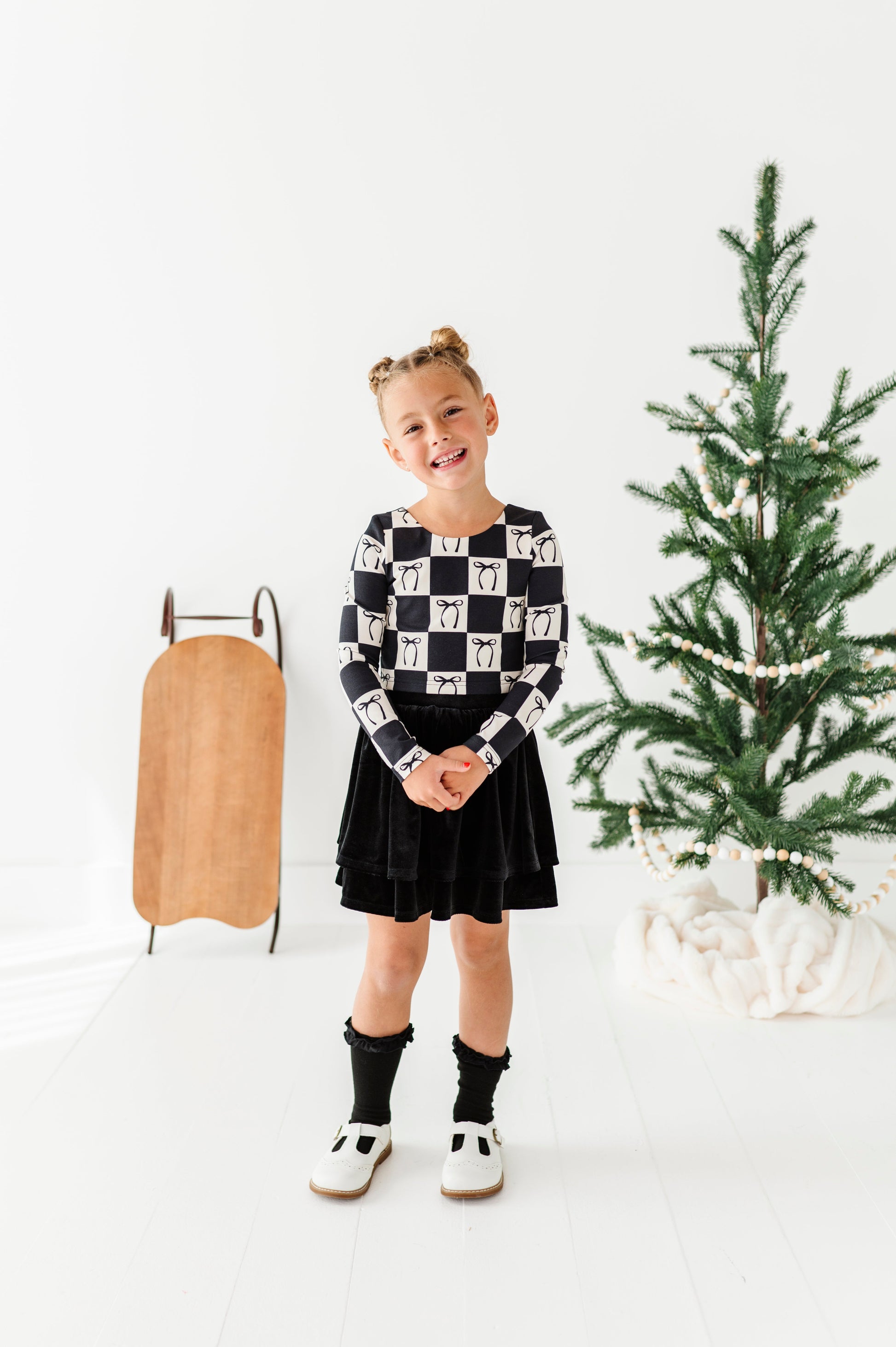Checkered Bow | CROPPED Bow Back Long Sleeve Top