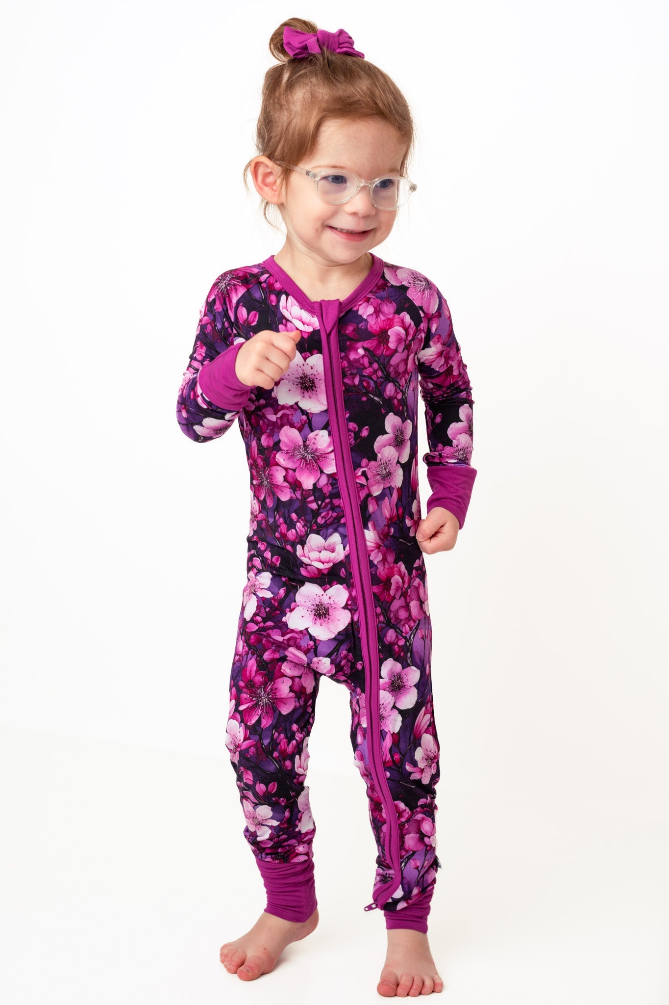 Cherry Blossoms | Convertible Bamboo Zipper Baby Pajamas