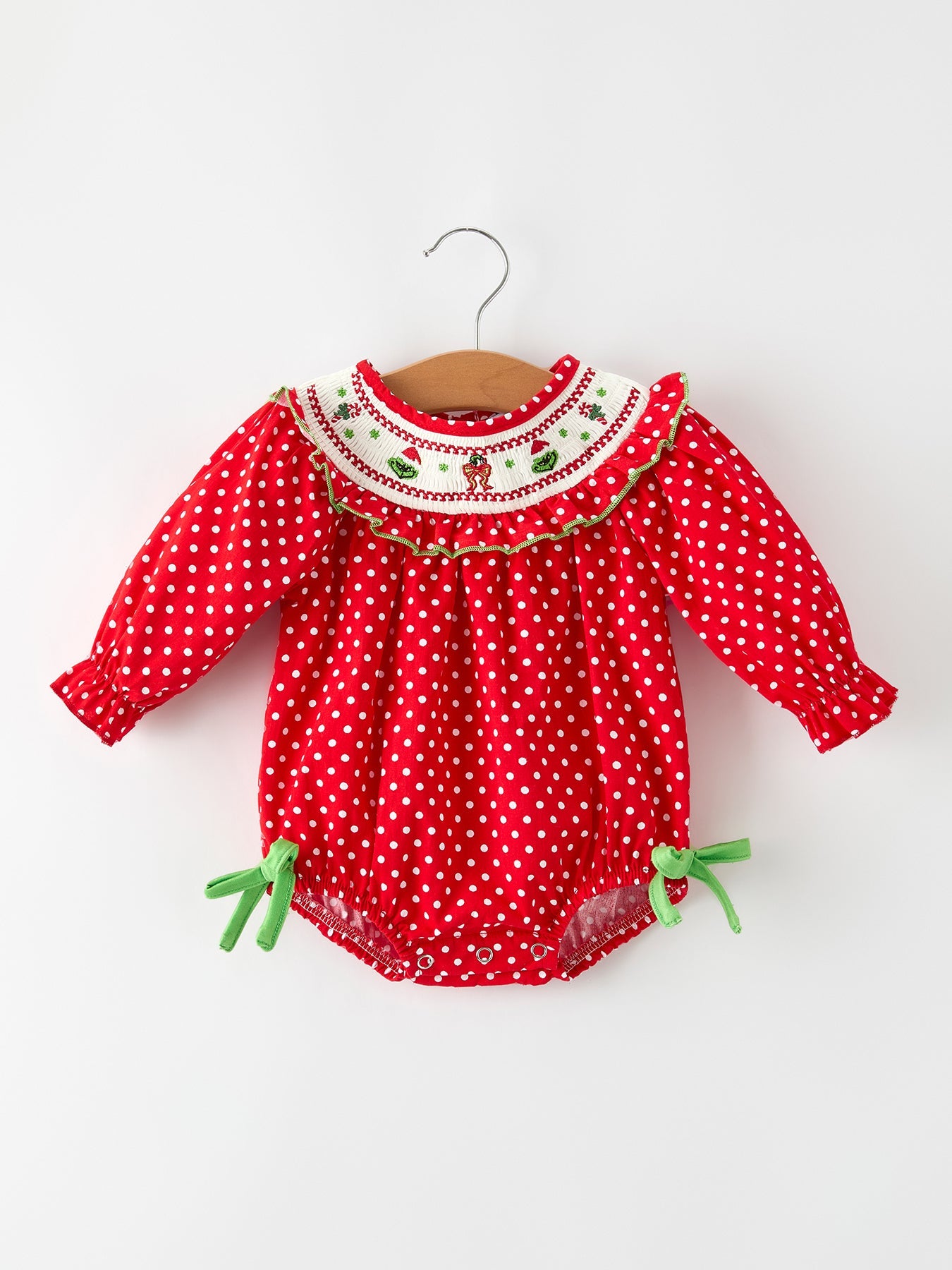 Christmas Cheer: Red Holiday Baby Girls Romper with Cute Embroidery