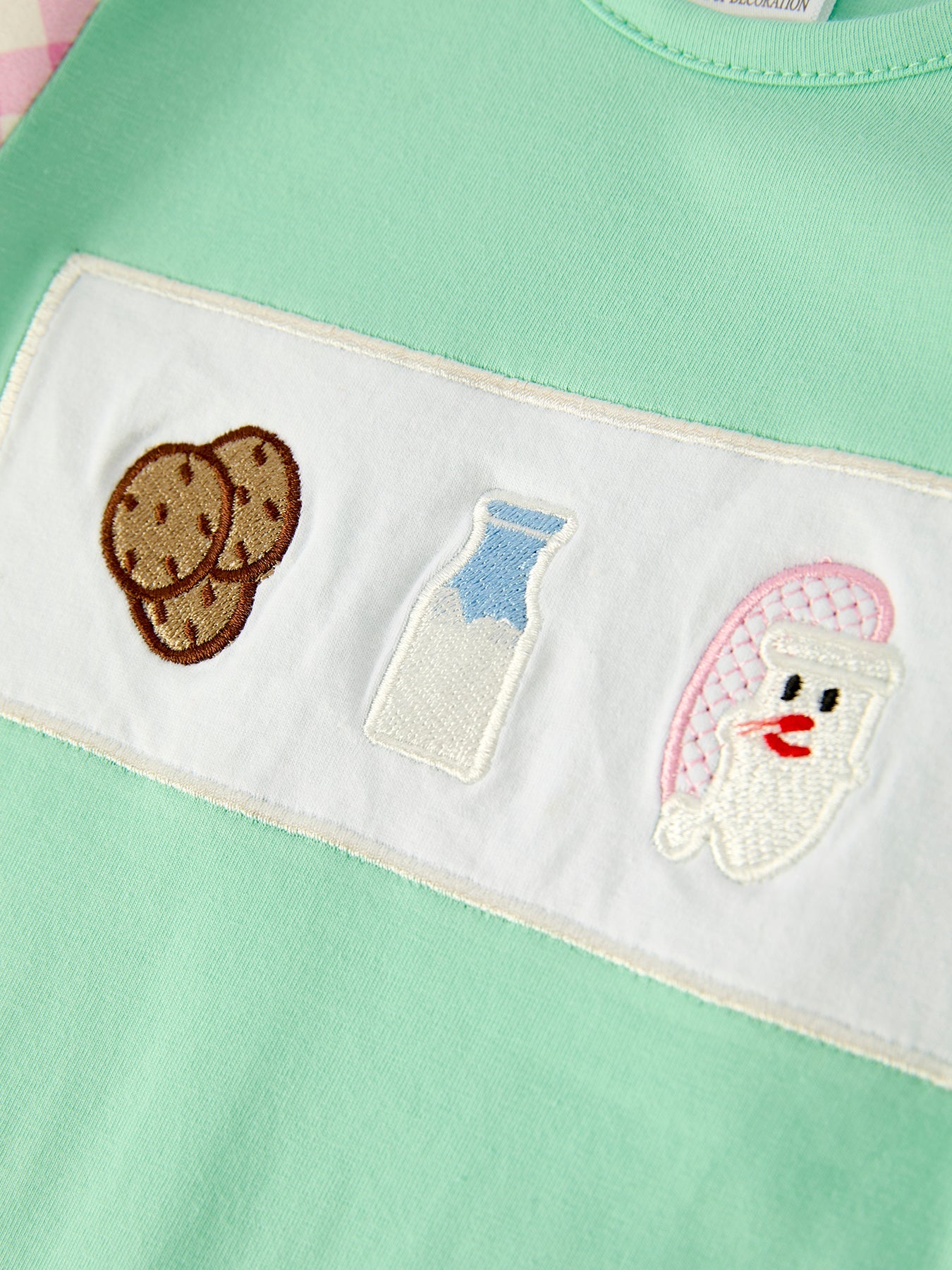 Christmas Green Santa Smock Applique Plaid Baby Boys Romper
