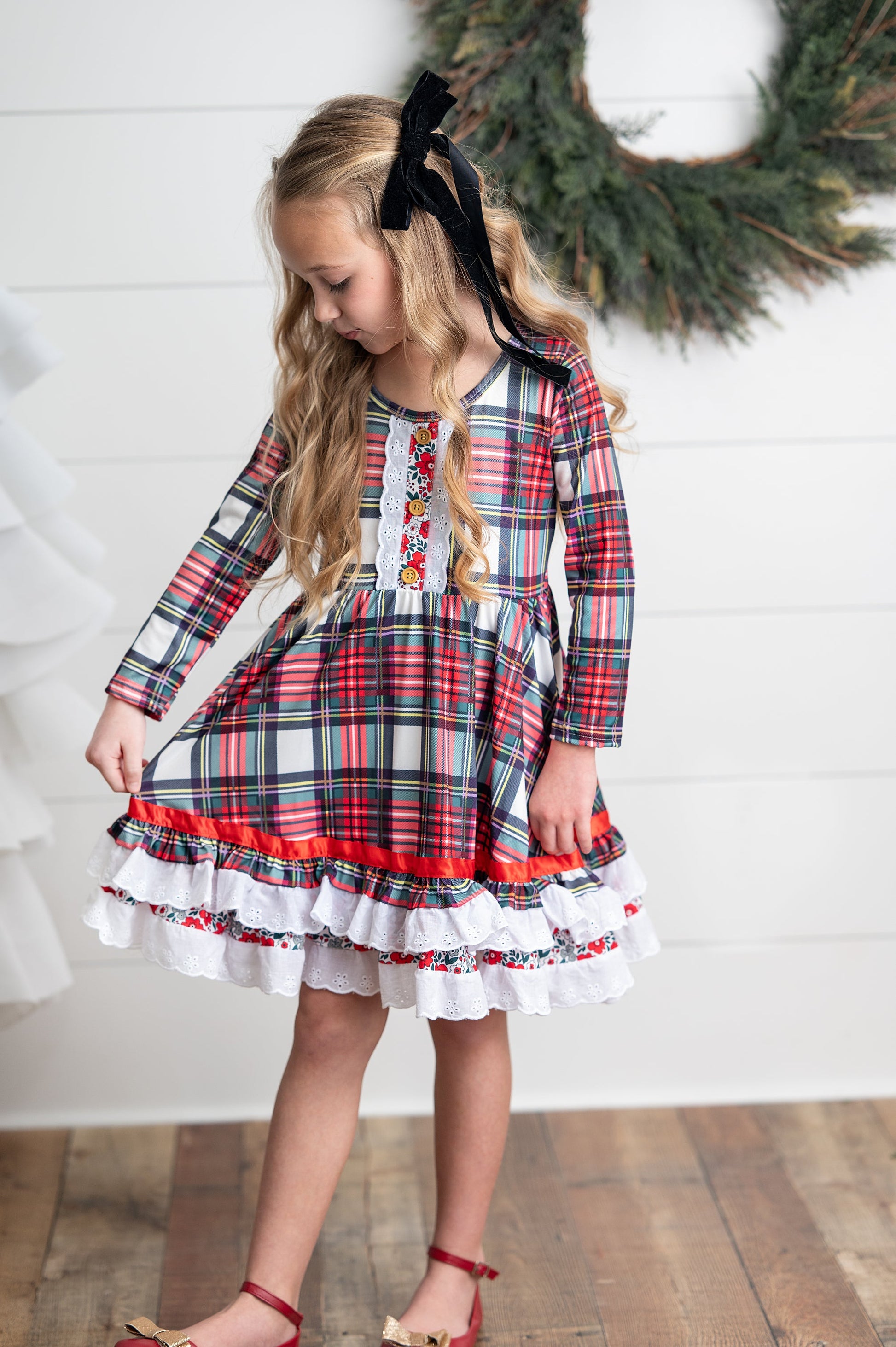 Dress to impress this holiday season with our festive Christmas Plaid Dress! Perfect for girls, this dress boasts a fun and playful plaid pattern that will make them stand out from the crowd. The lace ruffles and bow back detail provide a touch of holiday flair. This dress is sure to bring a smile to everyone's face!