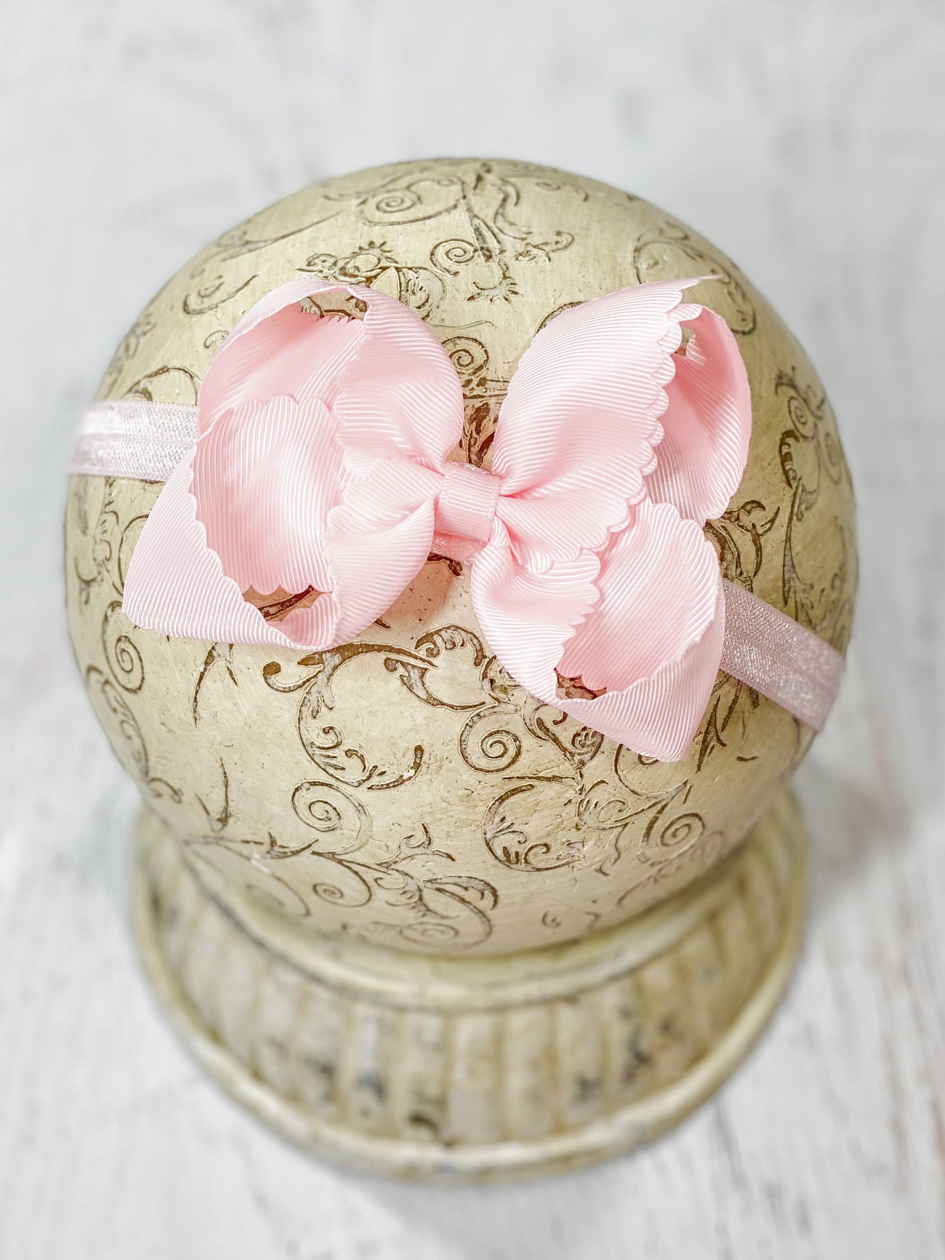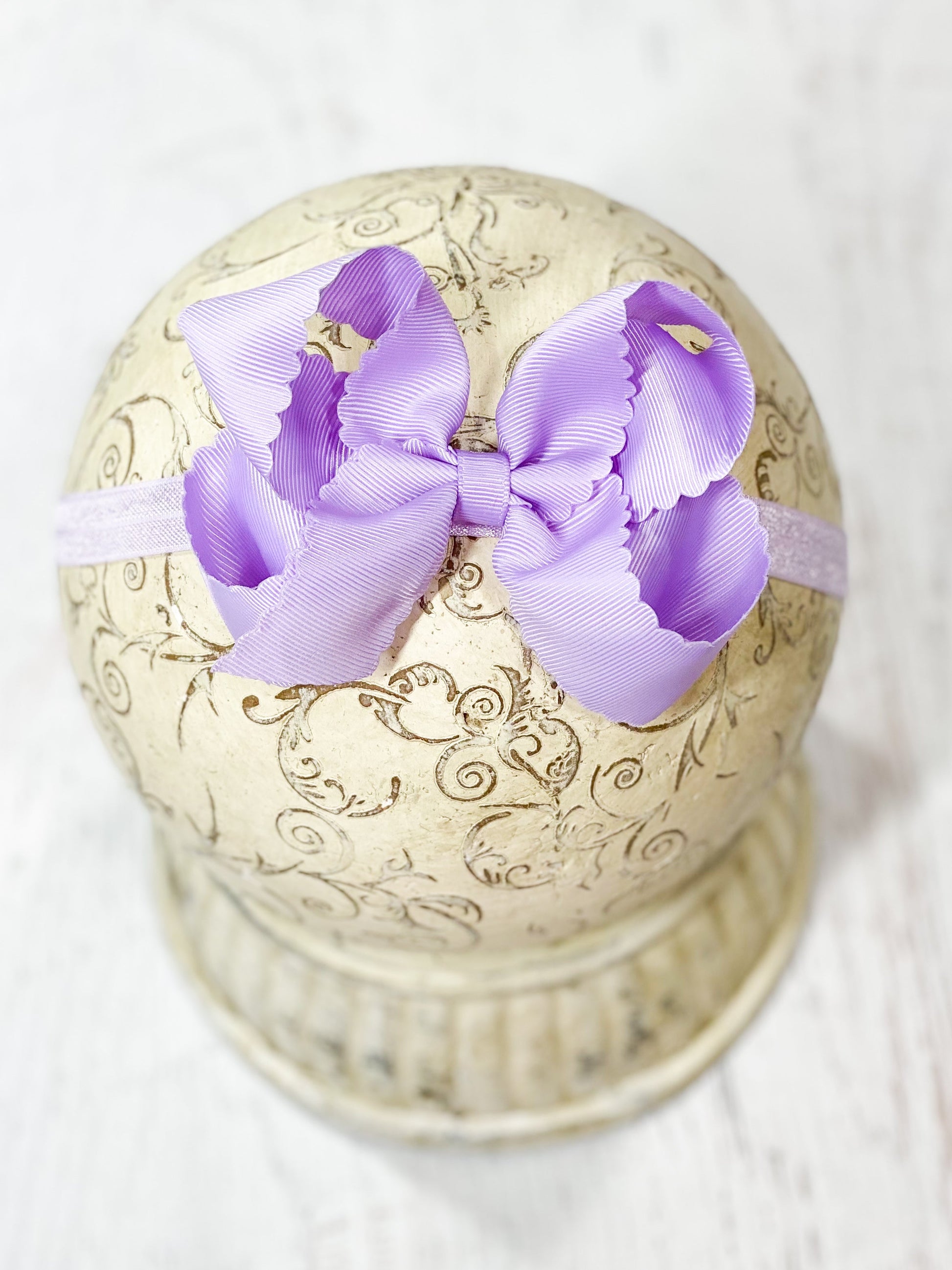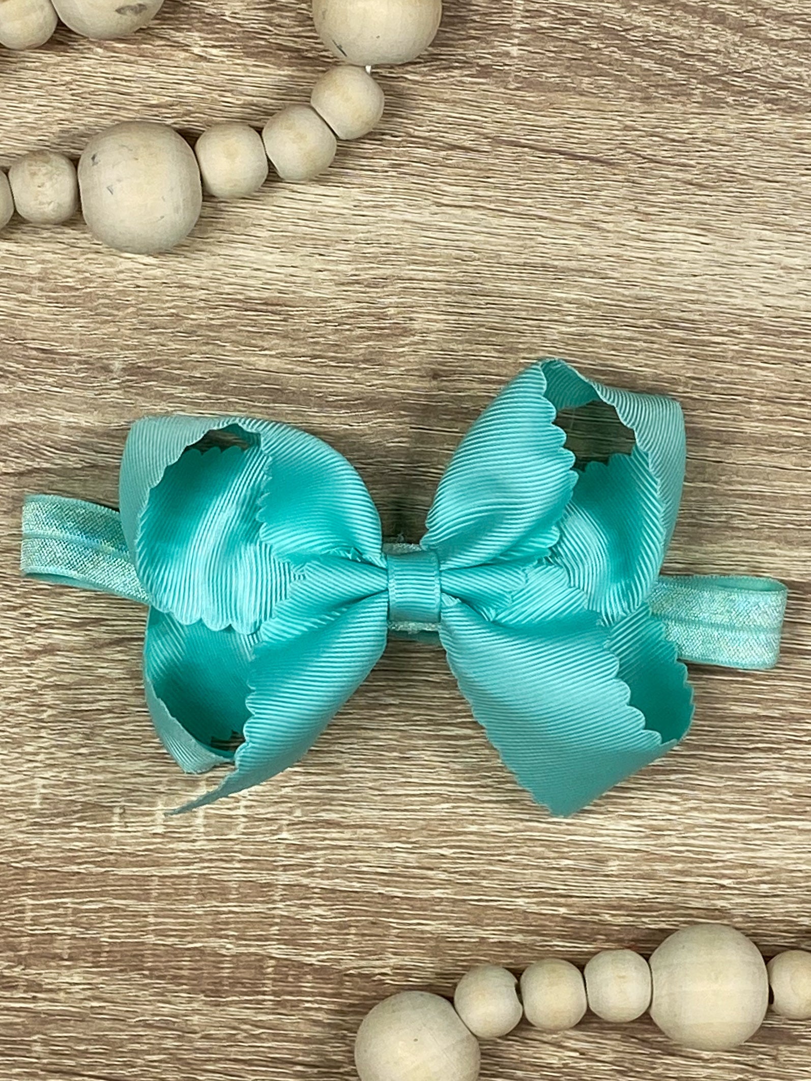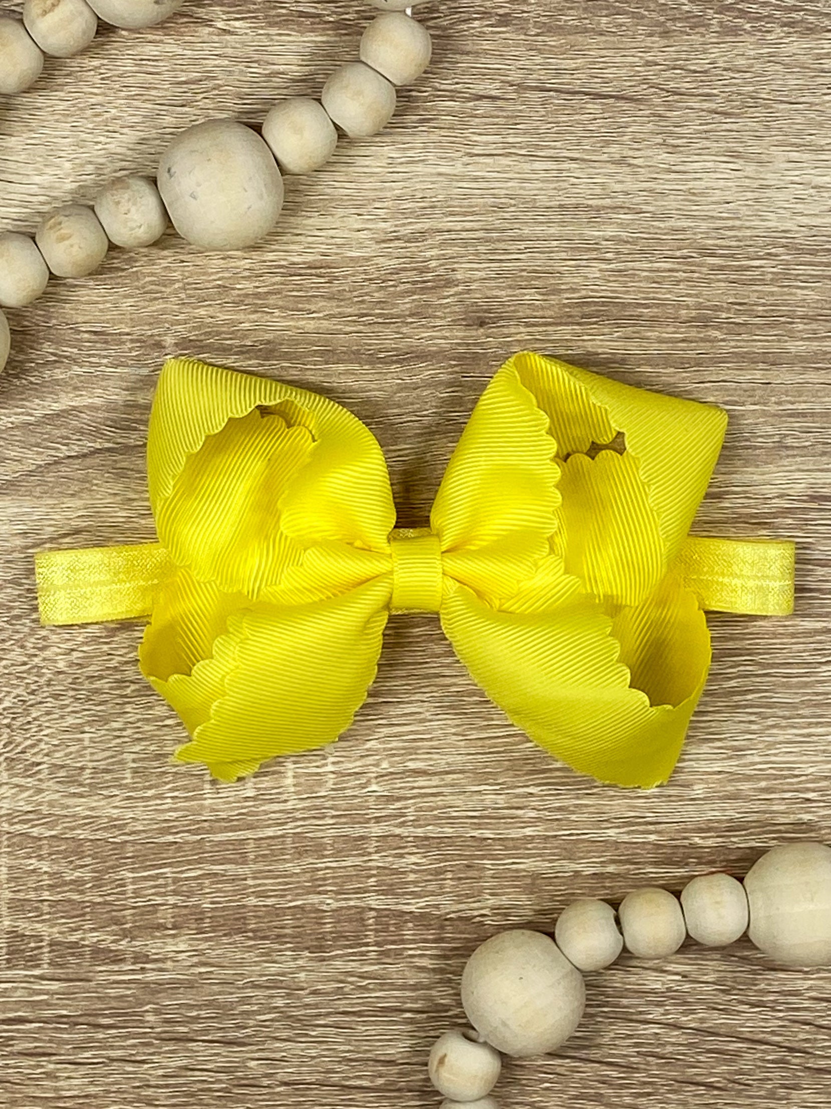 This headband is a real catch! With its scalloped design and classic size bow, it adds a playful touch to any outfit. Comfortable and stylish, it's a must-have accessory for any fashionista. Get ready to turn heads and receive compliments with this unique headband!