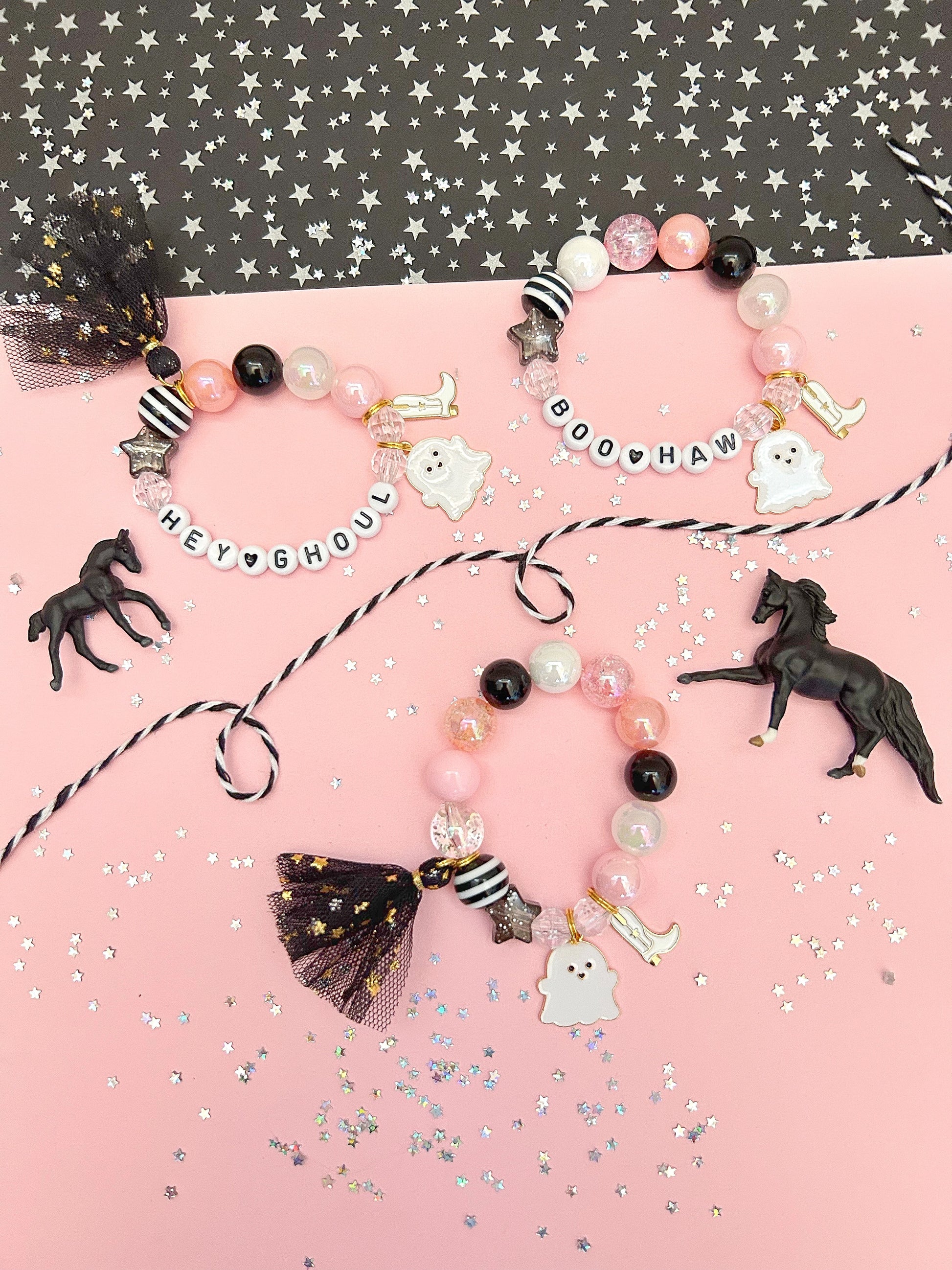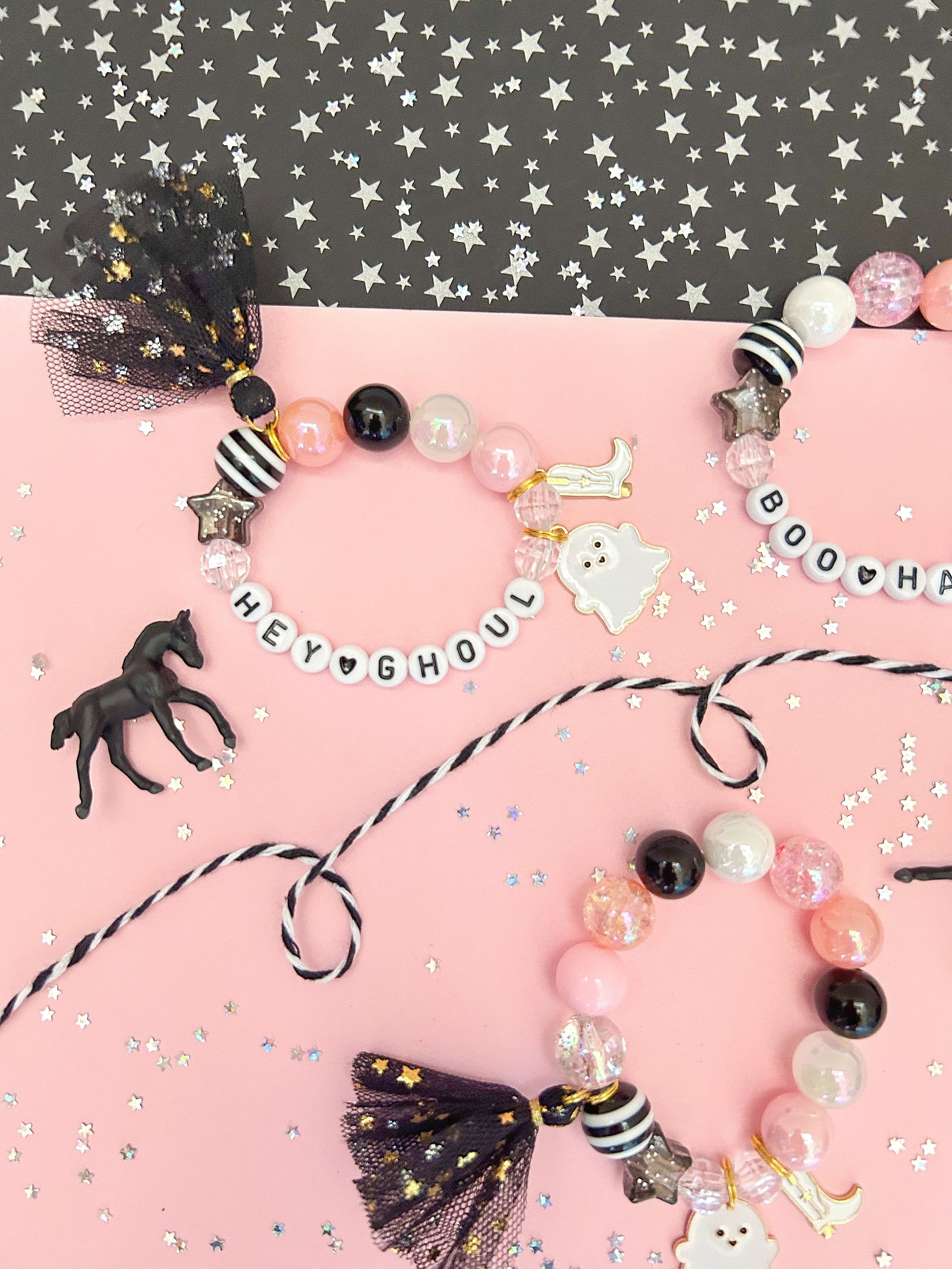 Designed for kids and adults who love all things magical, our bracelets feature a dazzling array of colorful beads and mystical charms. Each charm, from sparkling gemstones to whimsical creatures, tell a story of adventure and wonder. Perfect for adding a touch of magic to everyday outfits.