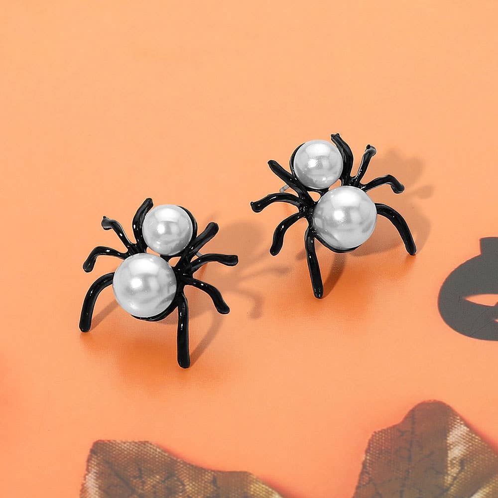 Creep it classy with these pearl spider Halloween earrings, featuring glossy black legs and faux pearl bodies. A spooky-chic twist perfect for Halloween parties, gothic looks, or costume flair.