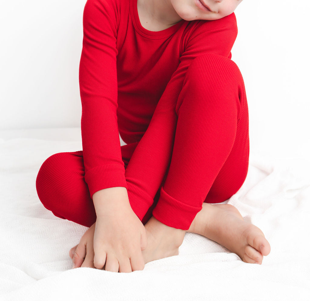 Crimson (Red) Ribbed Long Sleeve PJ's BDLJ