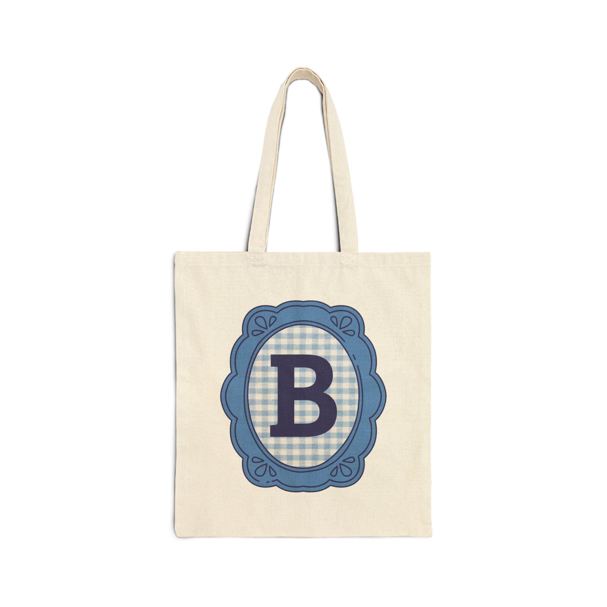 Cute Initial Tote Bag with Gingham Patterns and Letter for Daughter: B