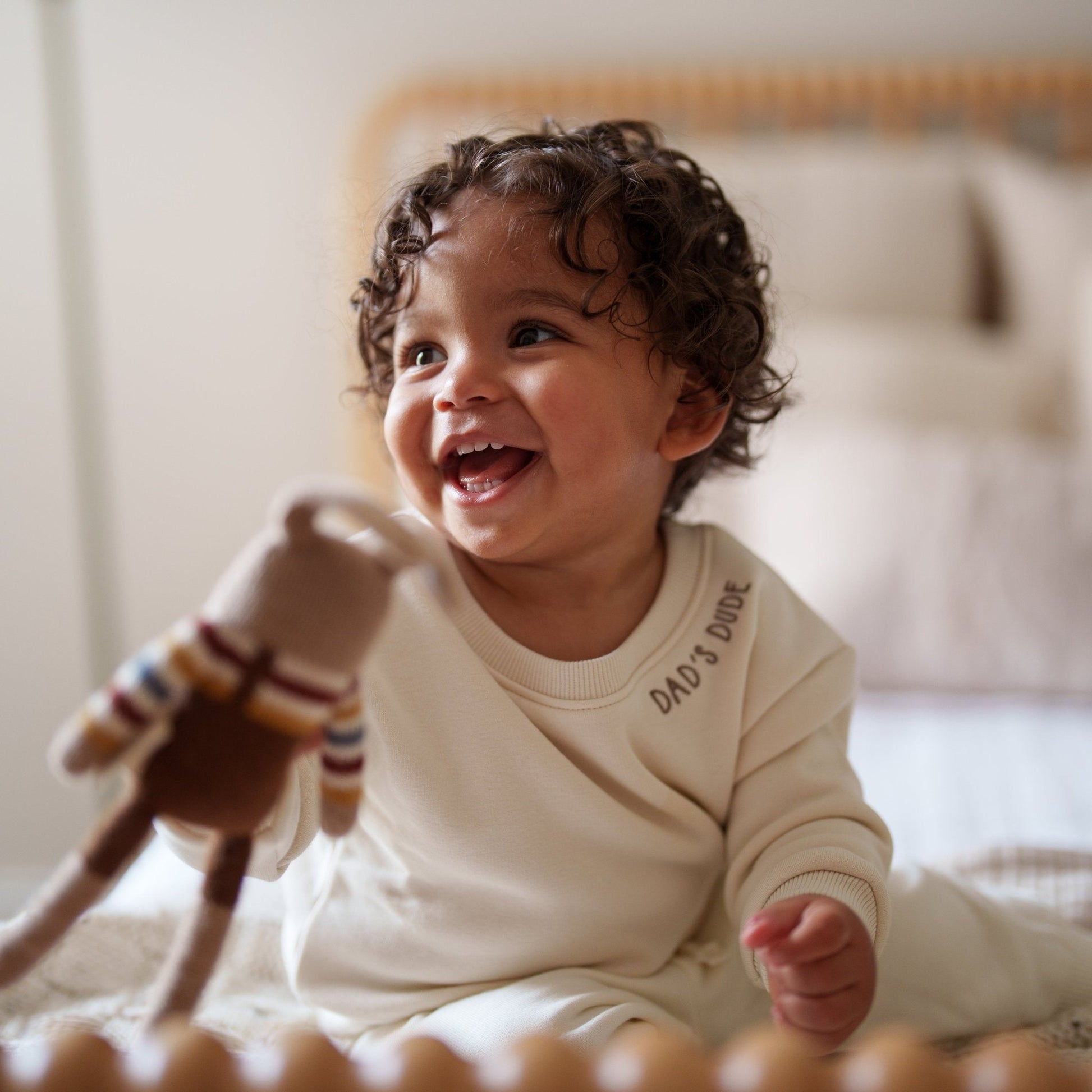 Introducing our adorable baby crewneck sweatshirt, designed to keep your little one cozy and stylish. Crafted with utmost care, it features an embroidered "dad's dude" or "daddy's girl" design along the collar line. Made from a premium fabric blend, this sweatshirt is soft, breathable, and perfect for both warm and cool weather. Its neutral tone complements any outfit, making it a versatile choice for various occasions. Dress your little one in this comfy sweatshirt and watch them radiate cuteness and warmth wherever they go.