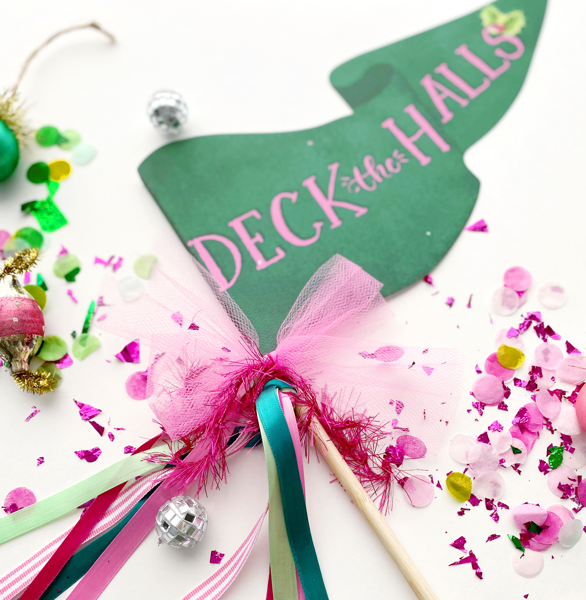 Party Pennants are so fun for celebration and photo props. Emerald green and pink are having a *moment* right now, and this Deck the Halls party pennant is perfect for celebrating Christmas and the holiday season with a trendy twist. Colorful Christmas queens will love this one!