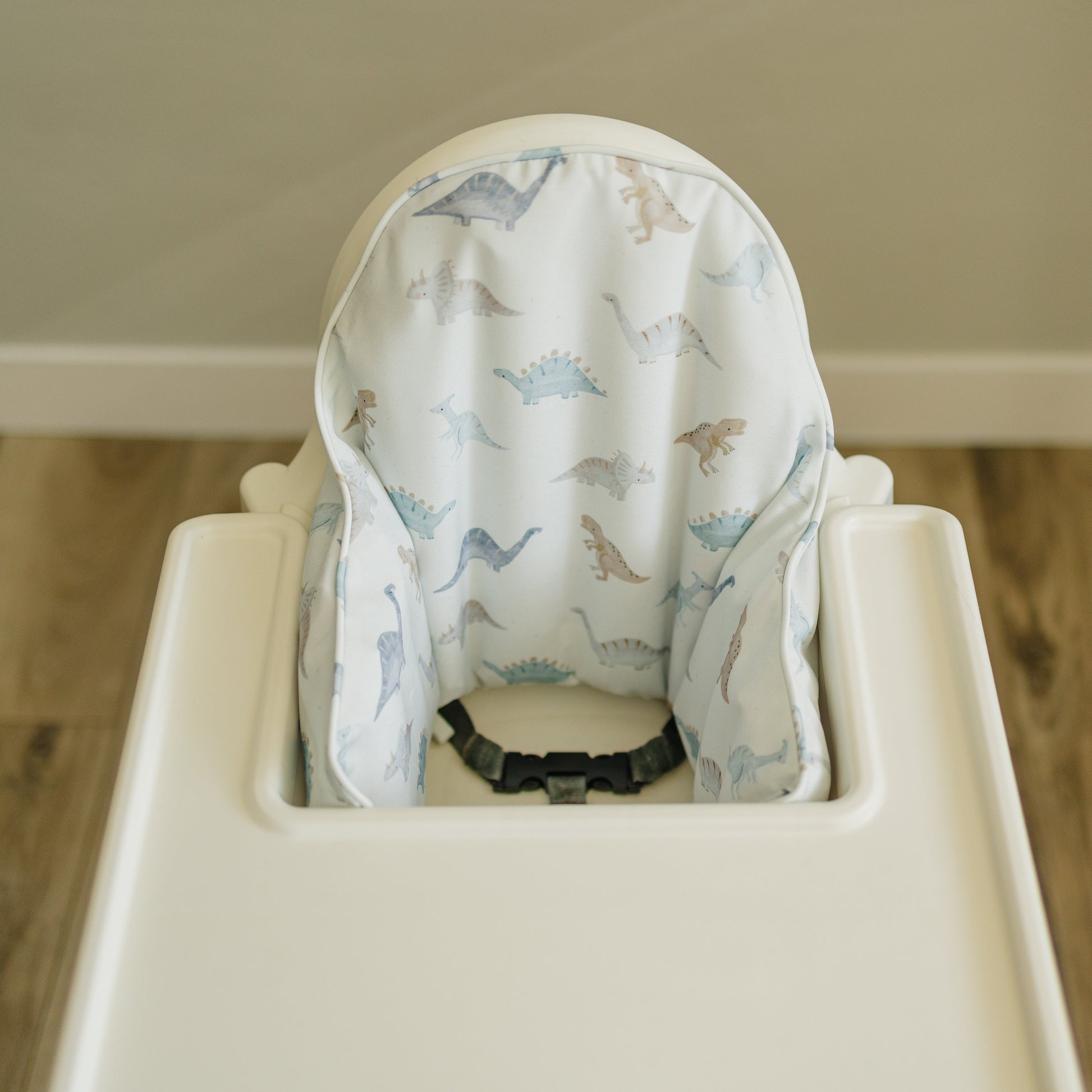 Blue Dinosaur's printed a light background! Wipeable cushion cover for the IKEA Antilop Highchair