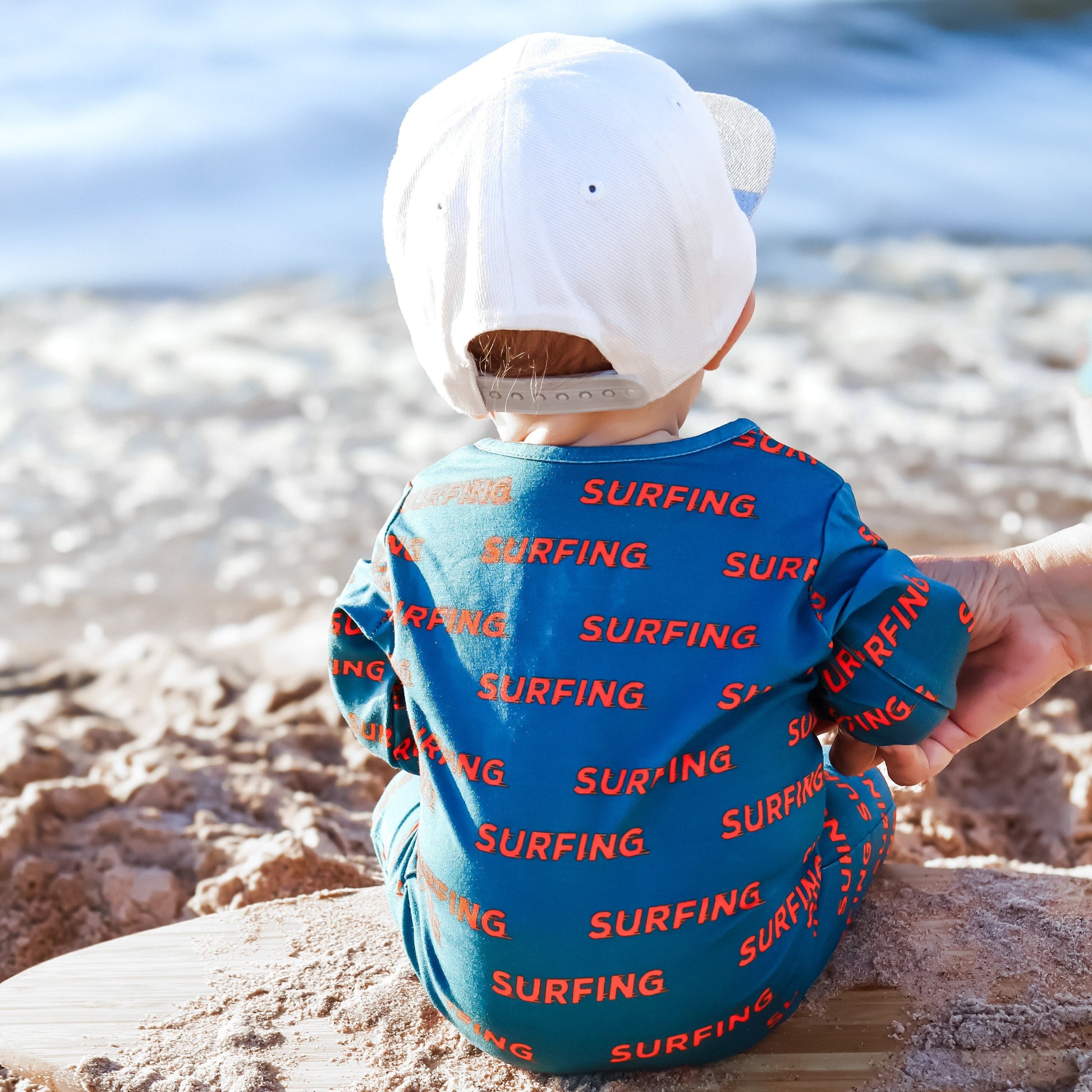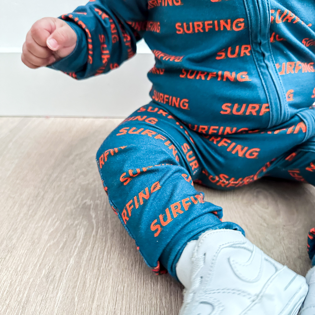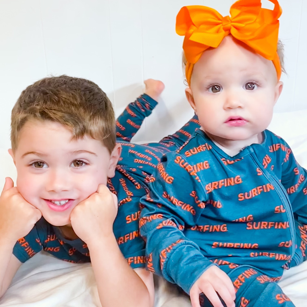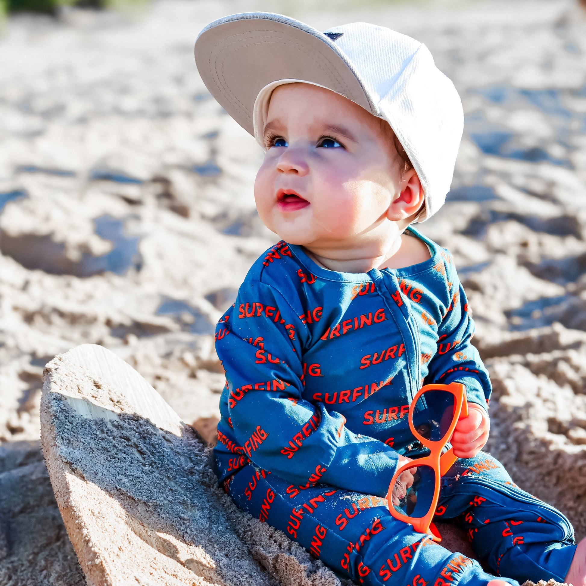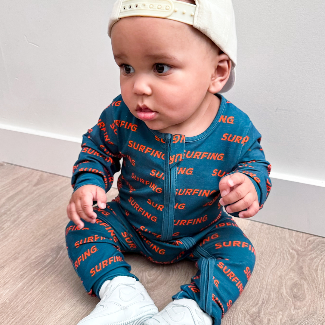 Our premium fabric blend of bamboo is a fan favorite, offering skin-soothing properties that can even help reduce the signs and symptoms of eczema. You're sure to be stoked over our LRT zipper onesies, that make diaper changes and bedtime a dream - literally.