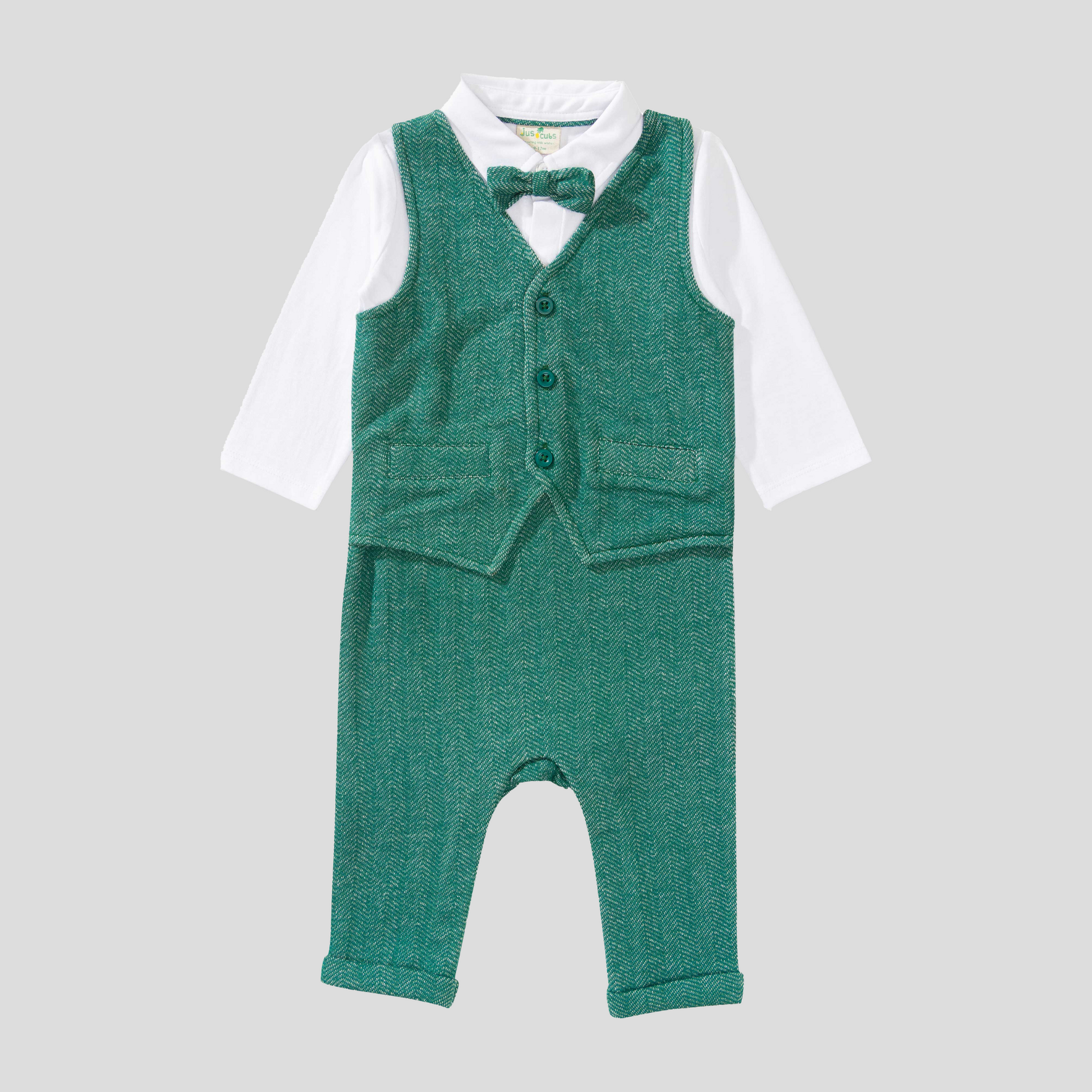 Dressy Waistcoat 1-Piece Romper for Baby Boys - Green