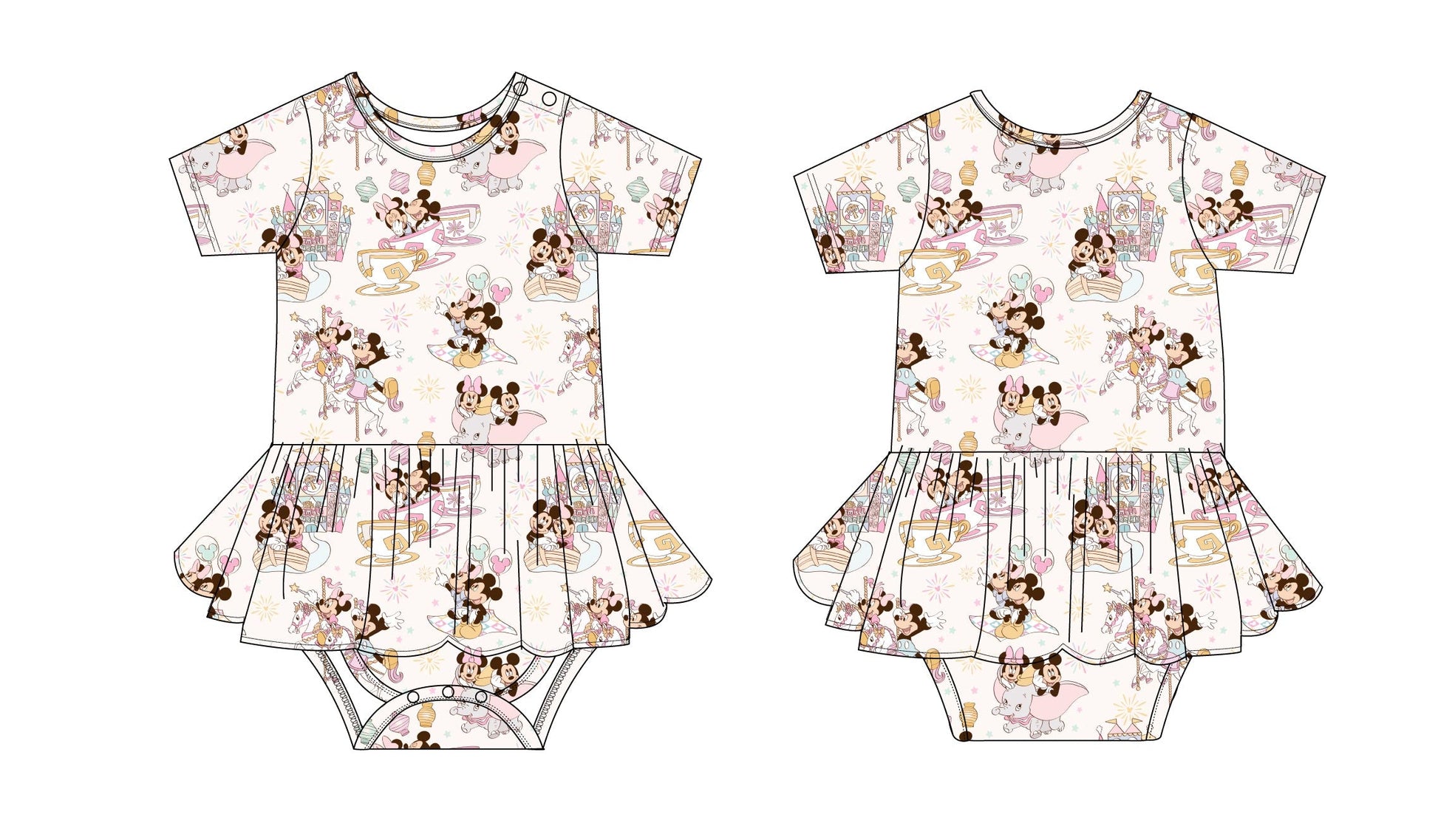 Crafted from buttery-soft, breathable bamboo viscose, these dresses provide all-day comfort for your little one. The built-in bodysuit includes snap closures for quick and hassle-free diaper changes, making them as practical as they are adorable.